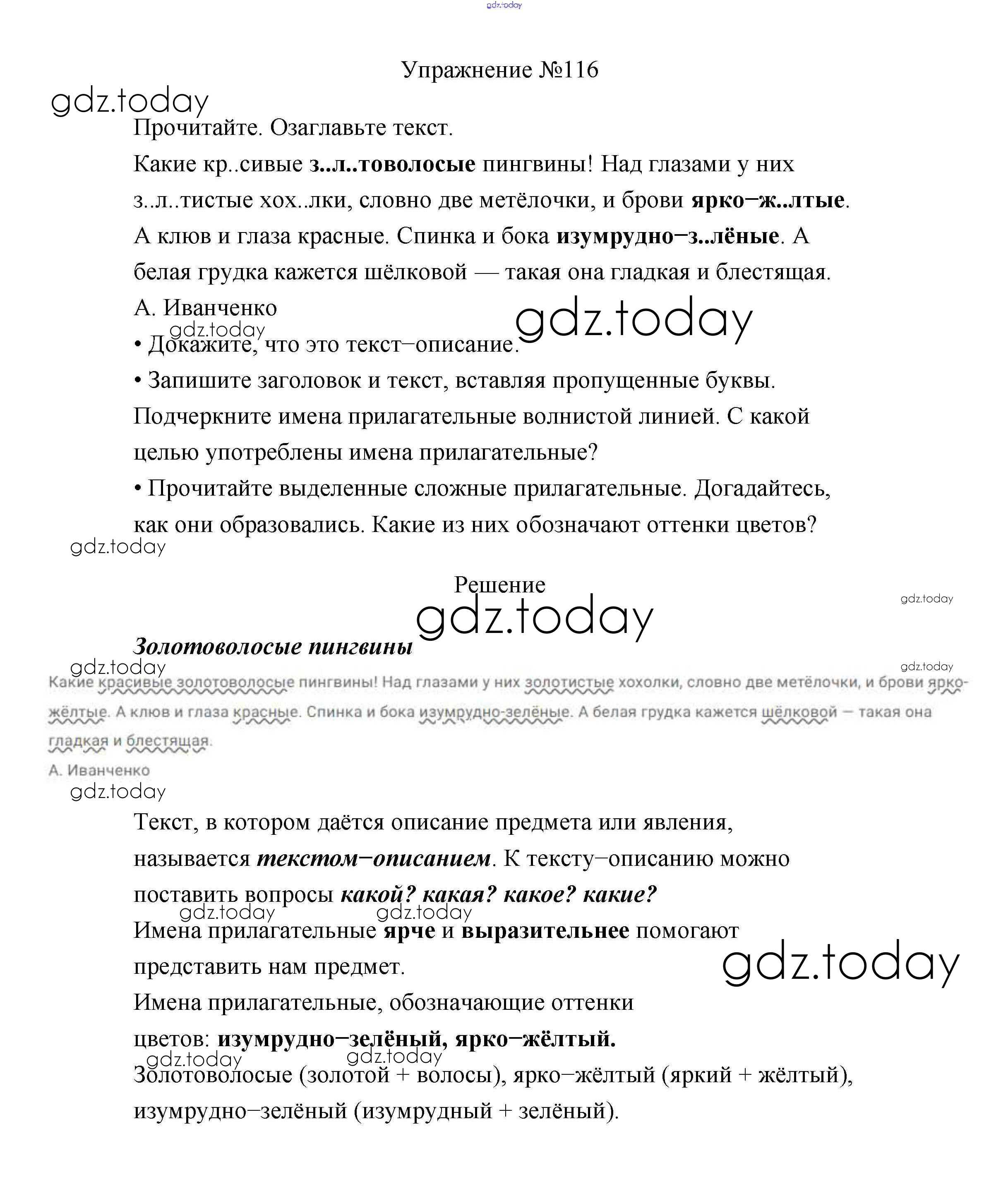 На страницах сайта gdz.today вы найдете учебный и вспомогательный материал, направленный на улучшения знаний школьной программы. ГДЗ - онлайн мир знаний Упражнения Часть 2 116 Учебнику по Русскому языку для 3 класса Канакина, Горецкий Просвещение Школа России 2013