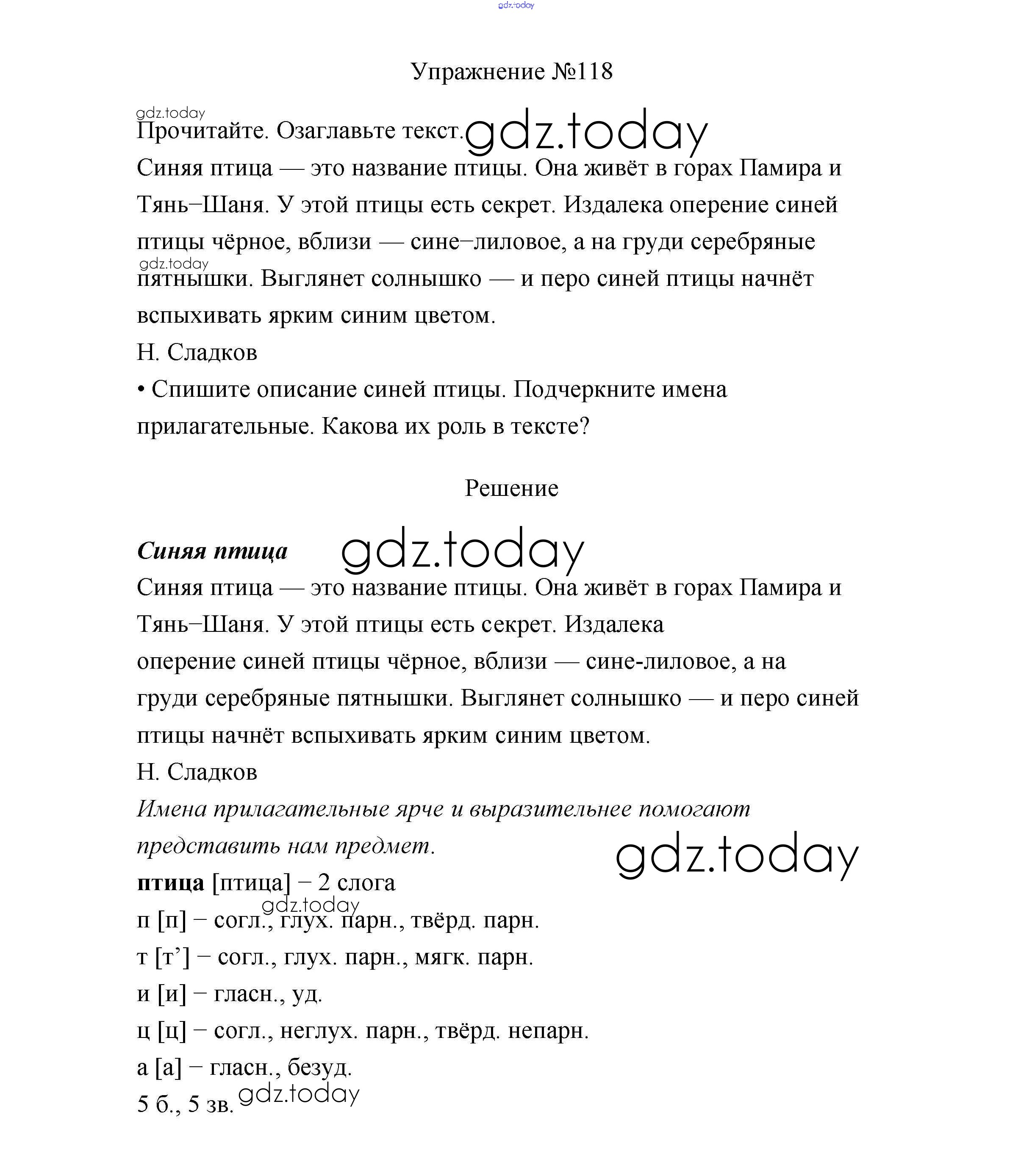 Ответы к Упражнения Часть 2 118 Учебнику по Русскому языку для 3 класса Канакина, Горецкий Просвещение Школа России 2013