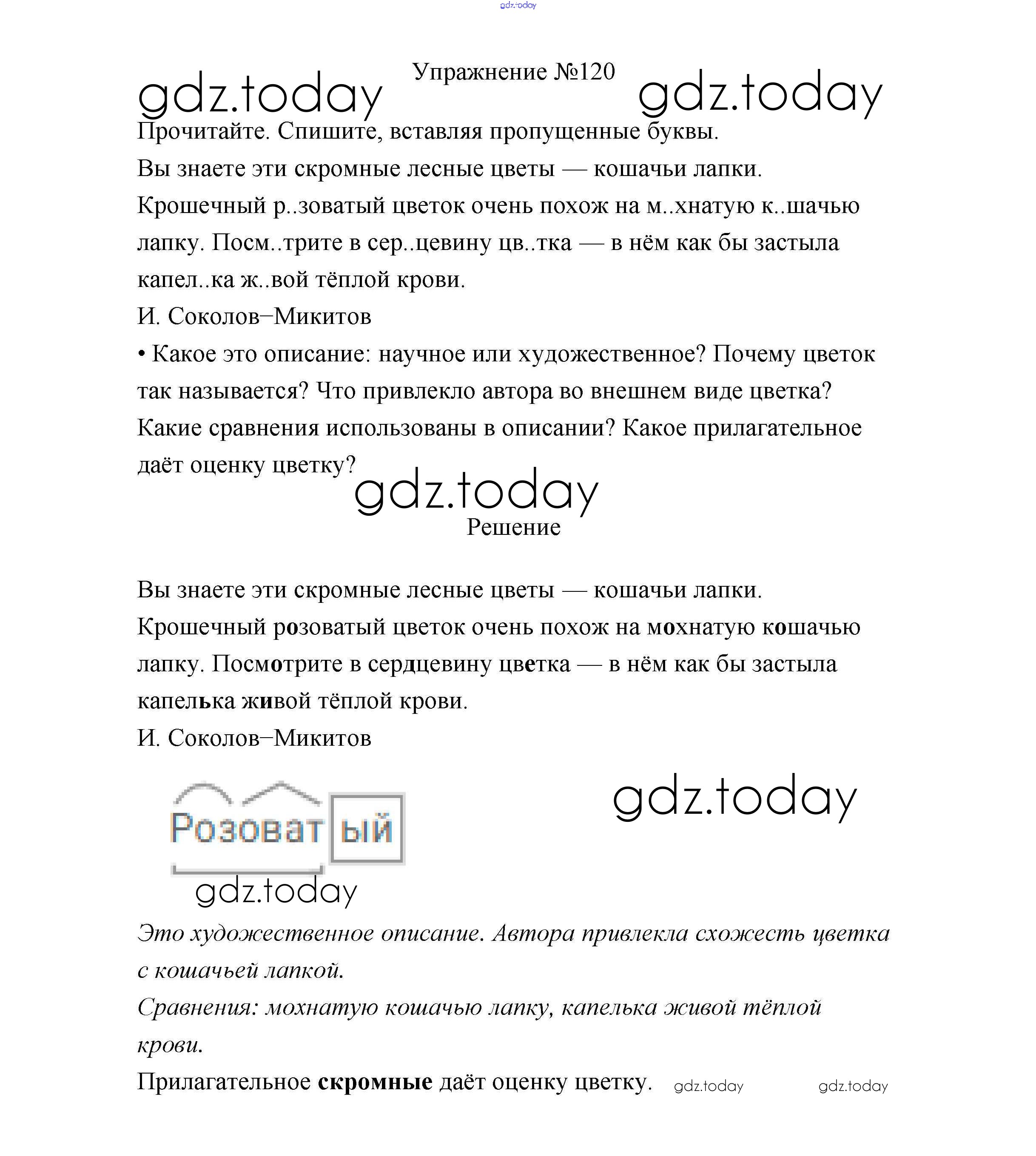 На страницах сайта gdz.today вы найдете учебный и вспомогательный материал, направленный на улучшения знаний школьной программы. ГДЗ - онлайн мир знаний Упражнения Часть 2 120 Учебнику по Русскому языку для 3 класса Канакина, Горецкий Просвещение Школа России 2013