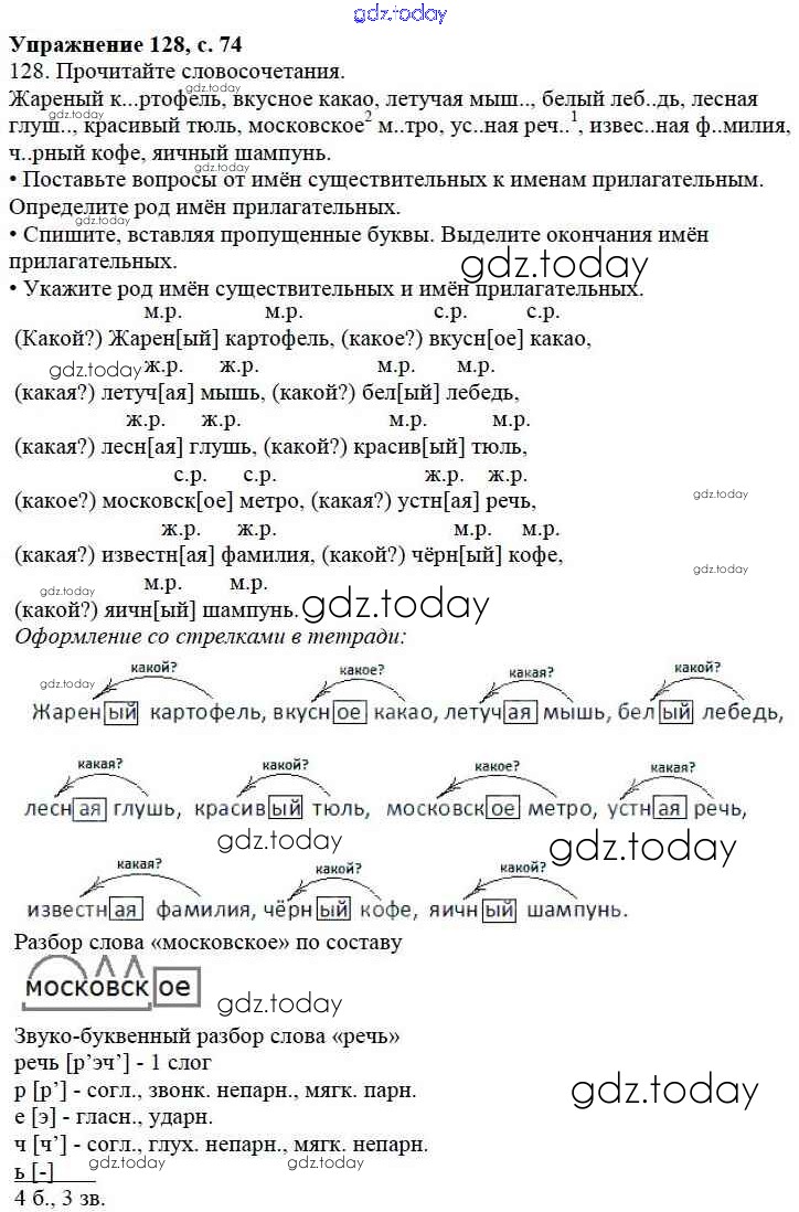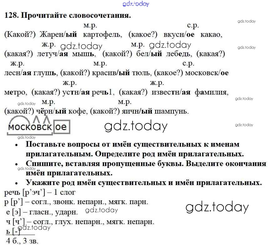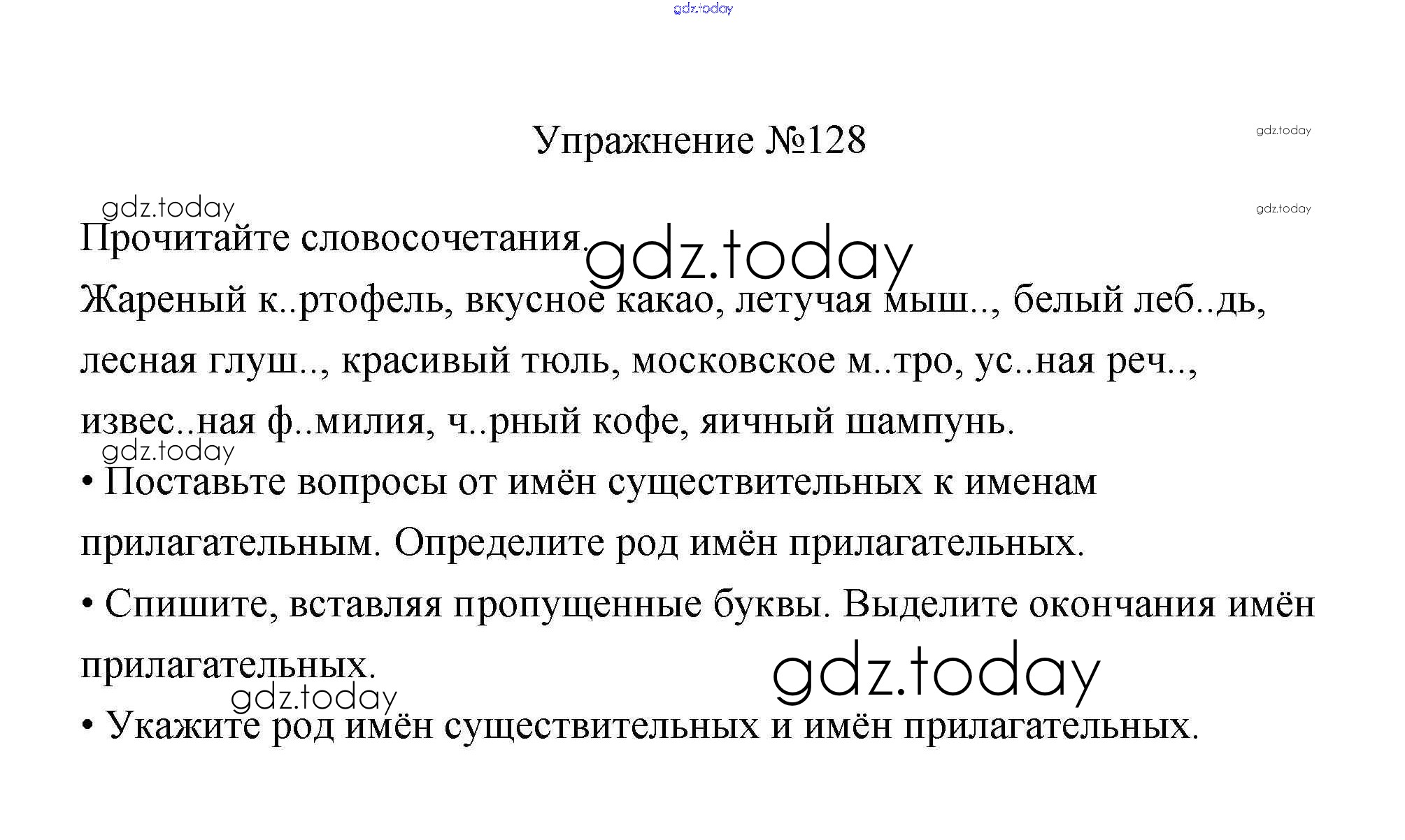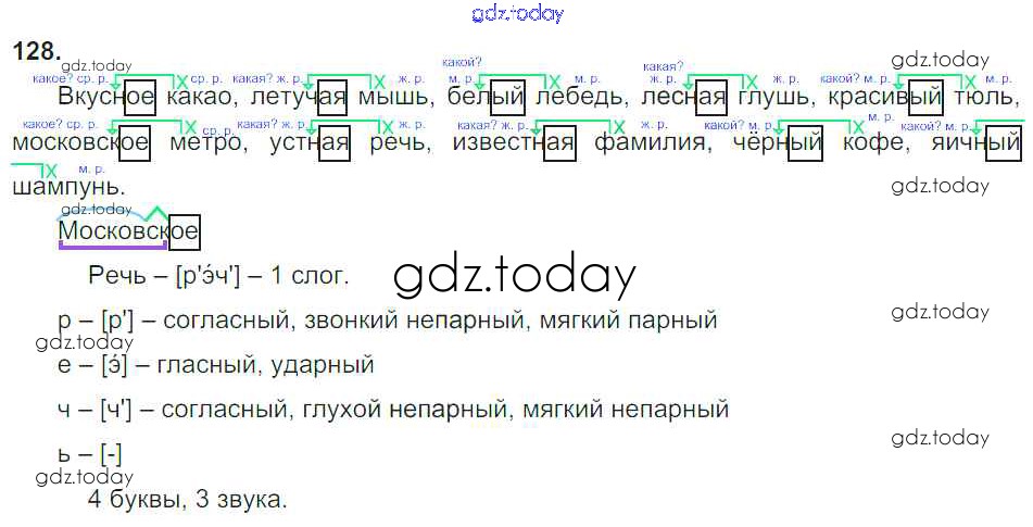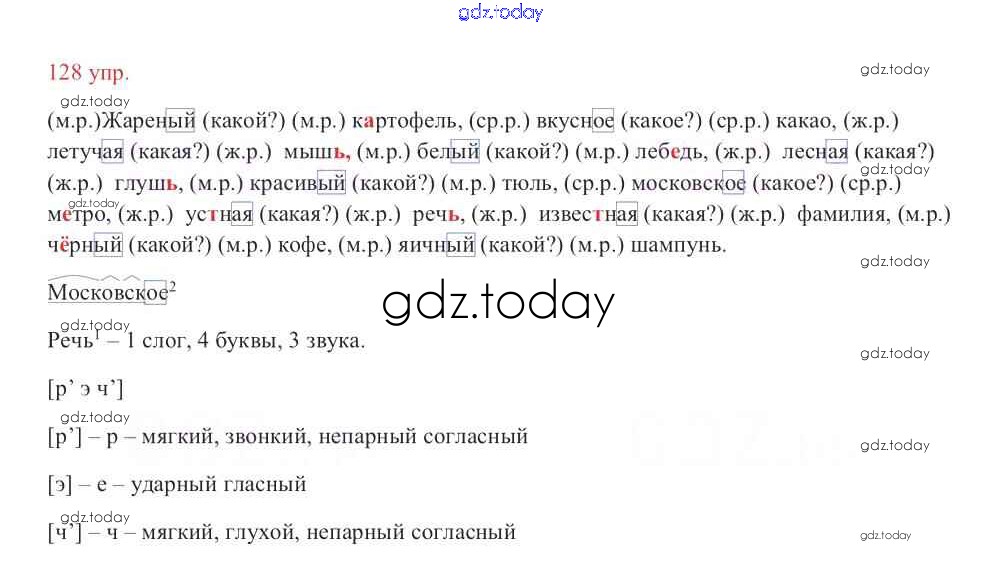 На страницах сайта gdz.today вы найдете учебный и вспомогательный материал, направленный на улучшения знаний школьной программы. ГДЗ - онлайн мир знаний Упражнения Часть 2 128 Учебнику по Русскому языку для 3 класса Канакина, Горецкий Просвещение Школа России 2013