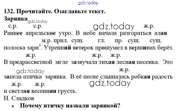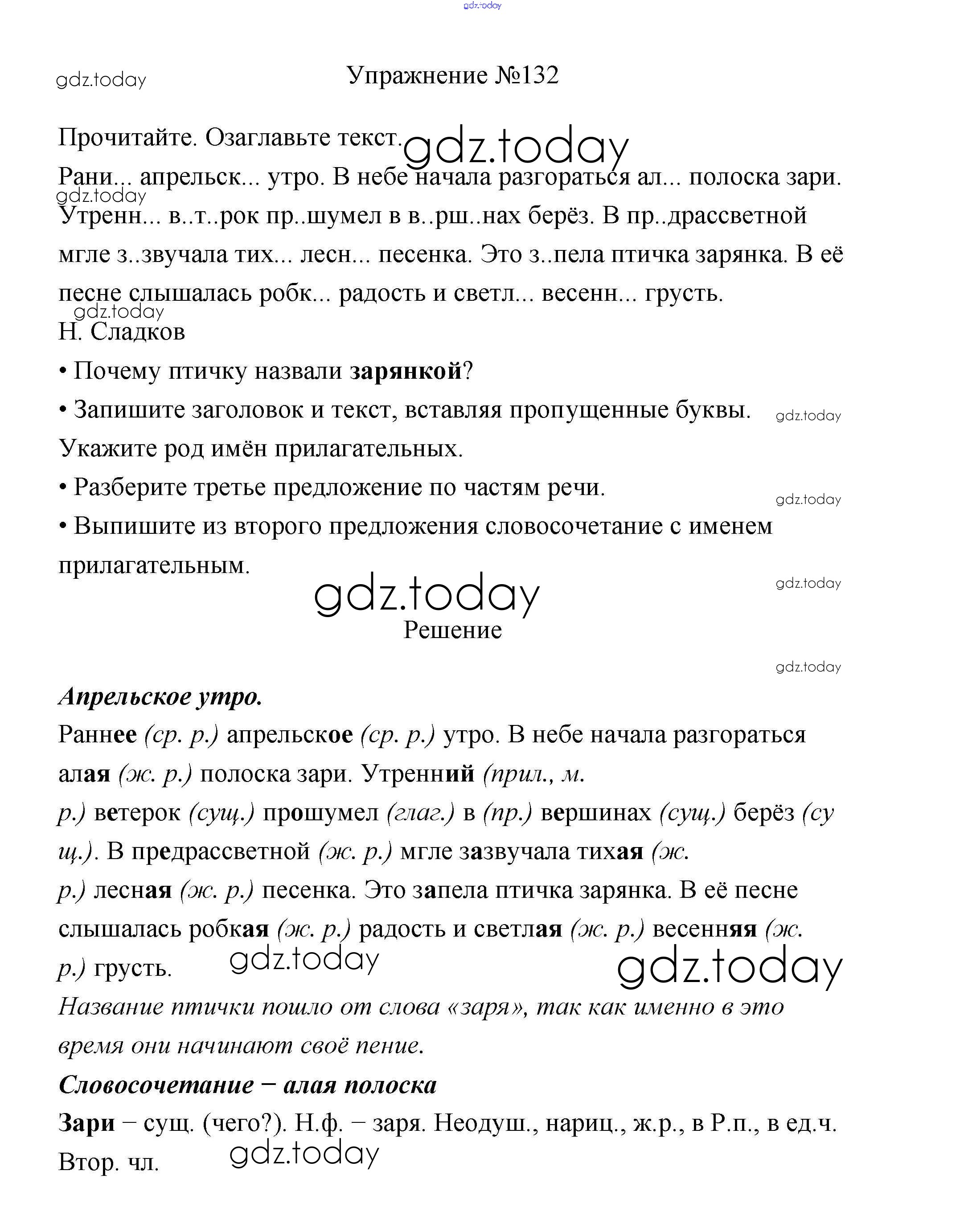 На страницах сайта gdz.today вы найдете учебный и вспомогательный материал, направленный на улучшения знаний школьной программы. ГДЗ - онлайн мир знаний Упражнения Часть 2 132 Учебнику по Русскому языку для 3 класса Канакина, Горецкий Просвещение Школа России 2013