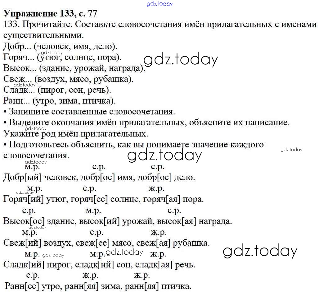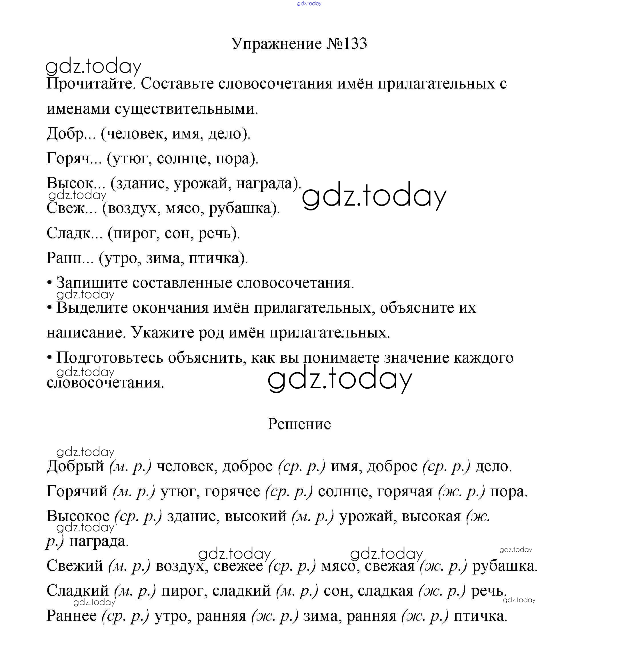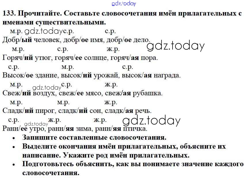 На страницах сайта gdz.today вы найдете учебный и вспомогательный материал, направленный на улучшения знаний школьной программы. ГДЗ - онлайн мир знаний Упражнения Часть 2 133 Учебнику по Русскому языку для 3 класса Канакина, Горецкий Просвещение Школа России 2013