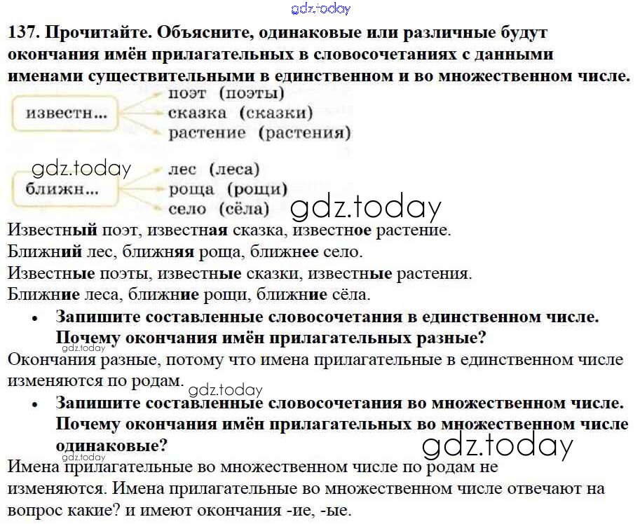 Ответы к Упражнения Часть 2 137 Учебнику по Русскому языку для 3 класса Канакина, Горецкий Просвещение Школа России 2013