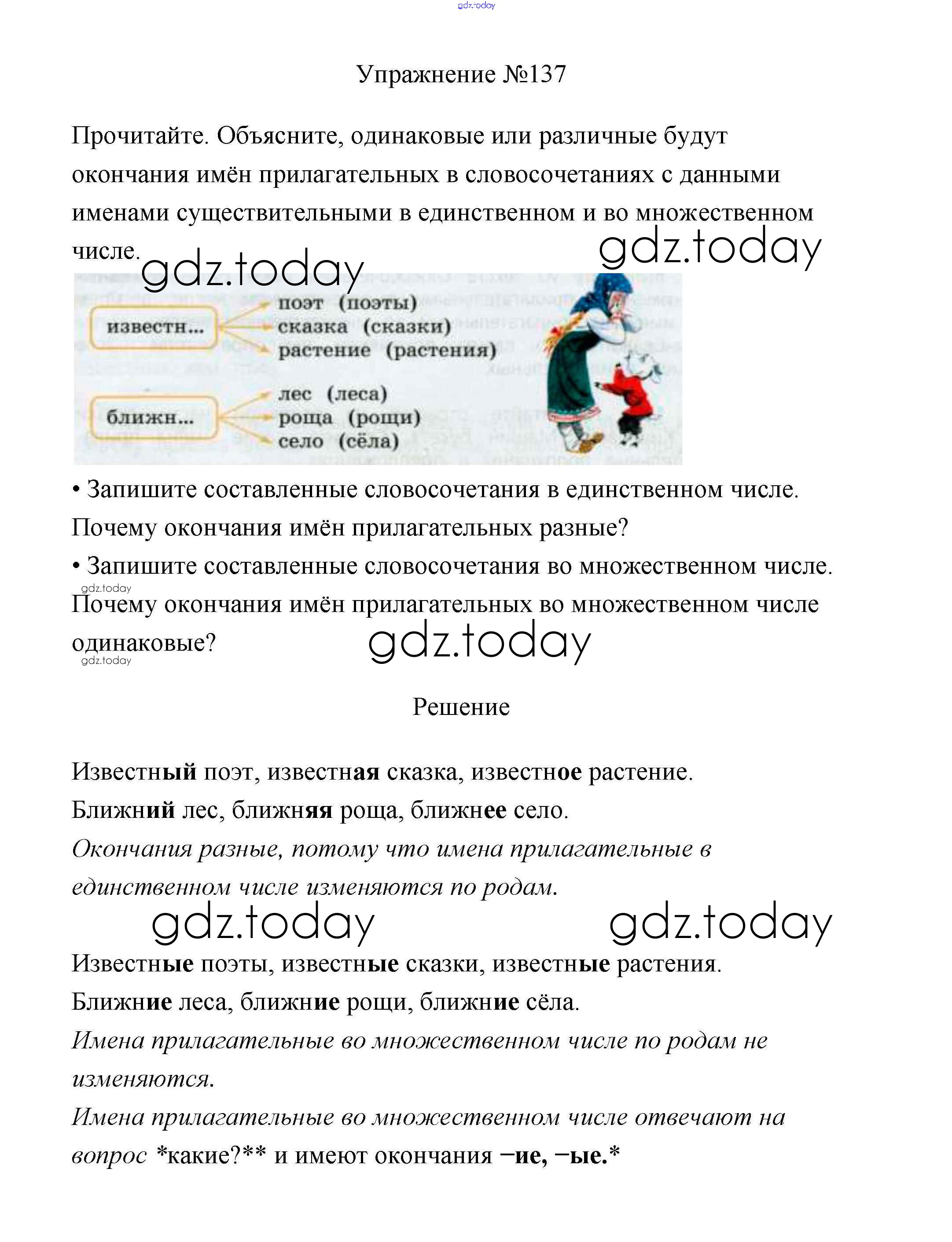 На страницах сайта gdz.today вы найдете учебный и вспомогательный материал, направленный на улучшения знаний школьной программы. ГДЗ - онлайн мир знаний Упражнения Часть 2 137 Учебнику по Русскому языку для 3 класса Канакина, Горецкий Просвещение Школа России 2013