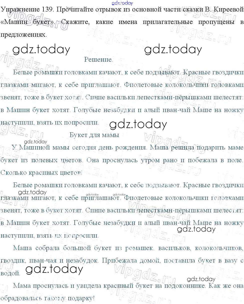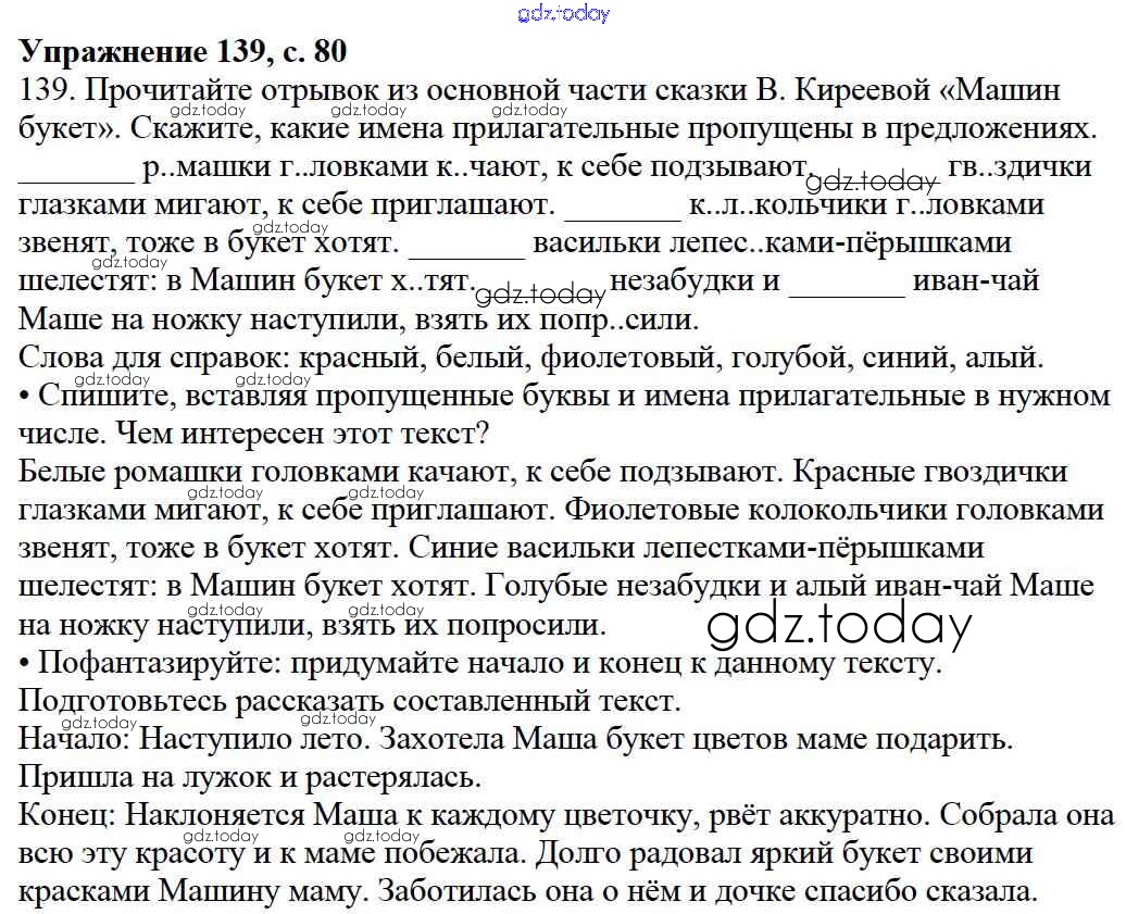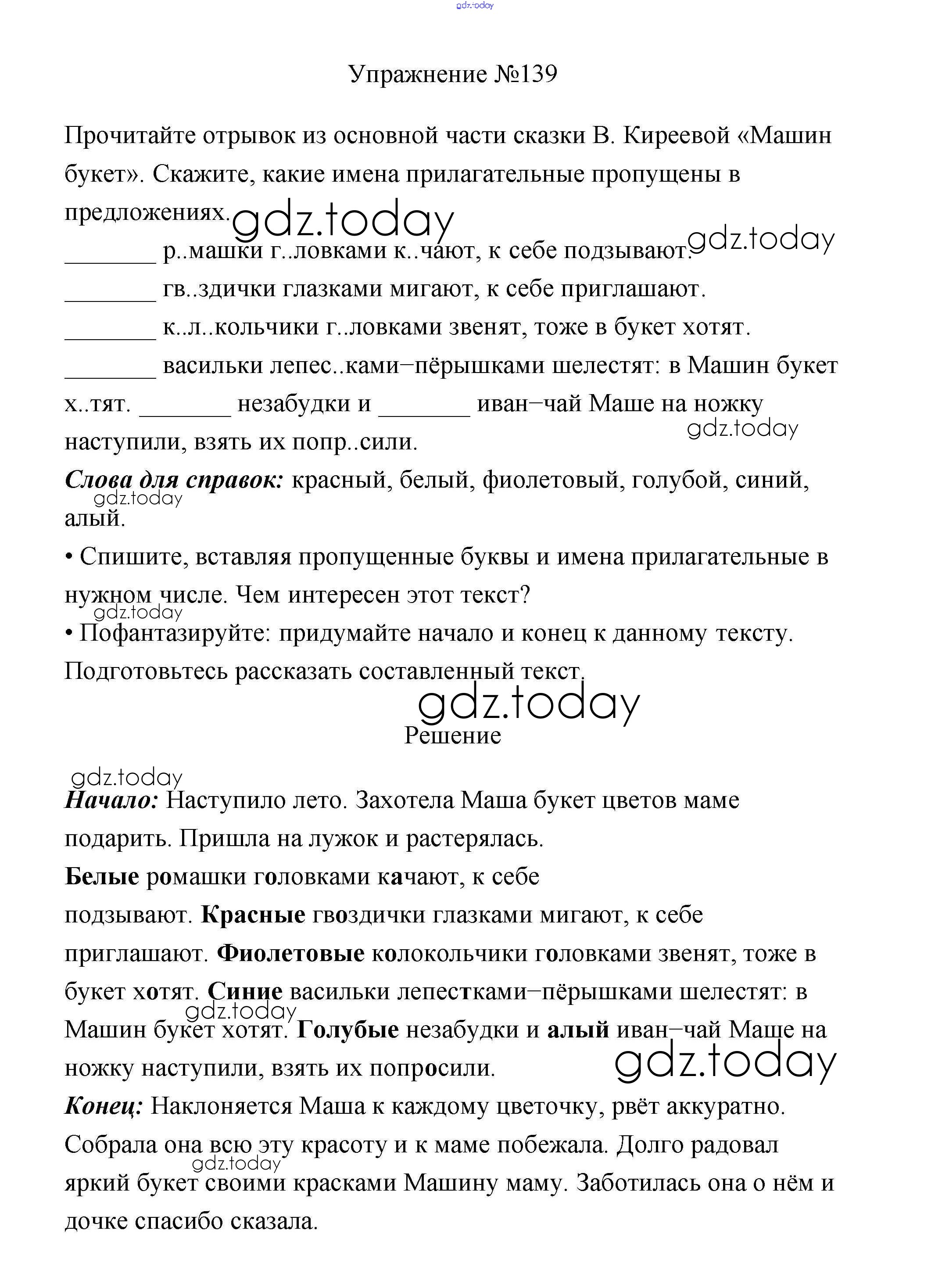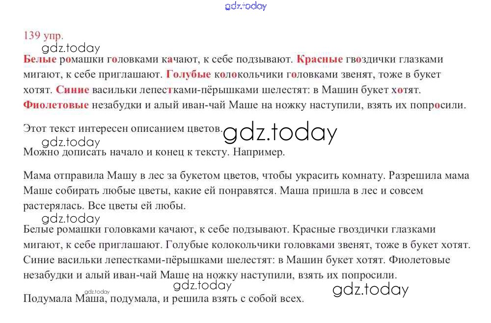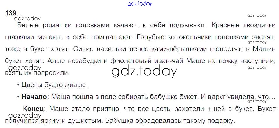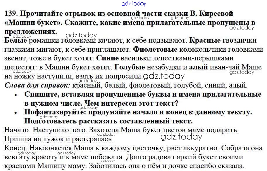 На страницах сайта gdz.today вы найдете учебный и вспомогательный материал, направленный на улучшения знаний школьной программы. ГДЗ - онлайн мир знаний Упражнения Часть 2 139 Учебнику по Русскому языку для 3 класса Канакина, Горецкий Просвещение Школа России 2013