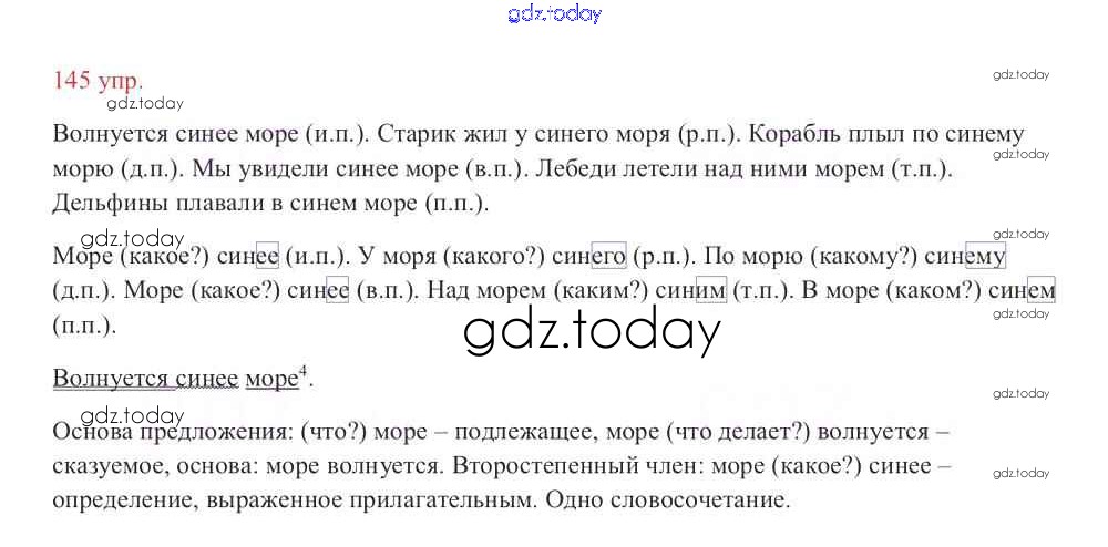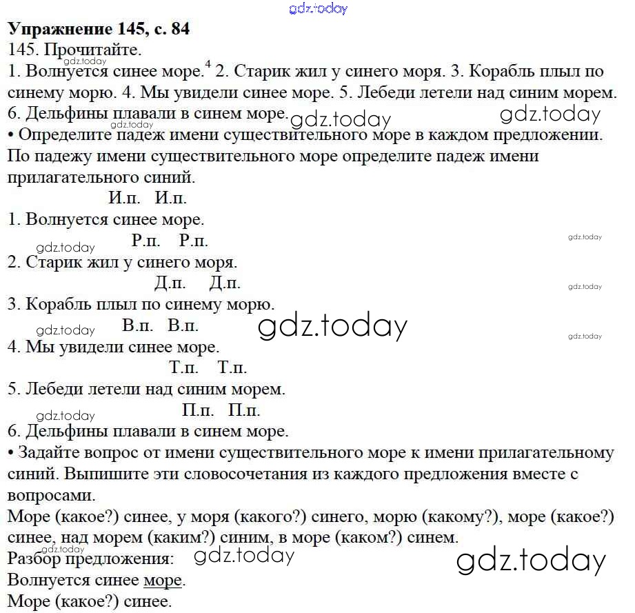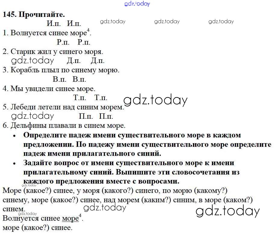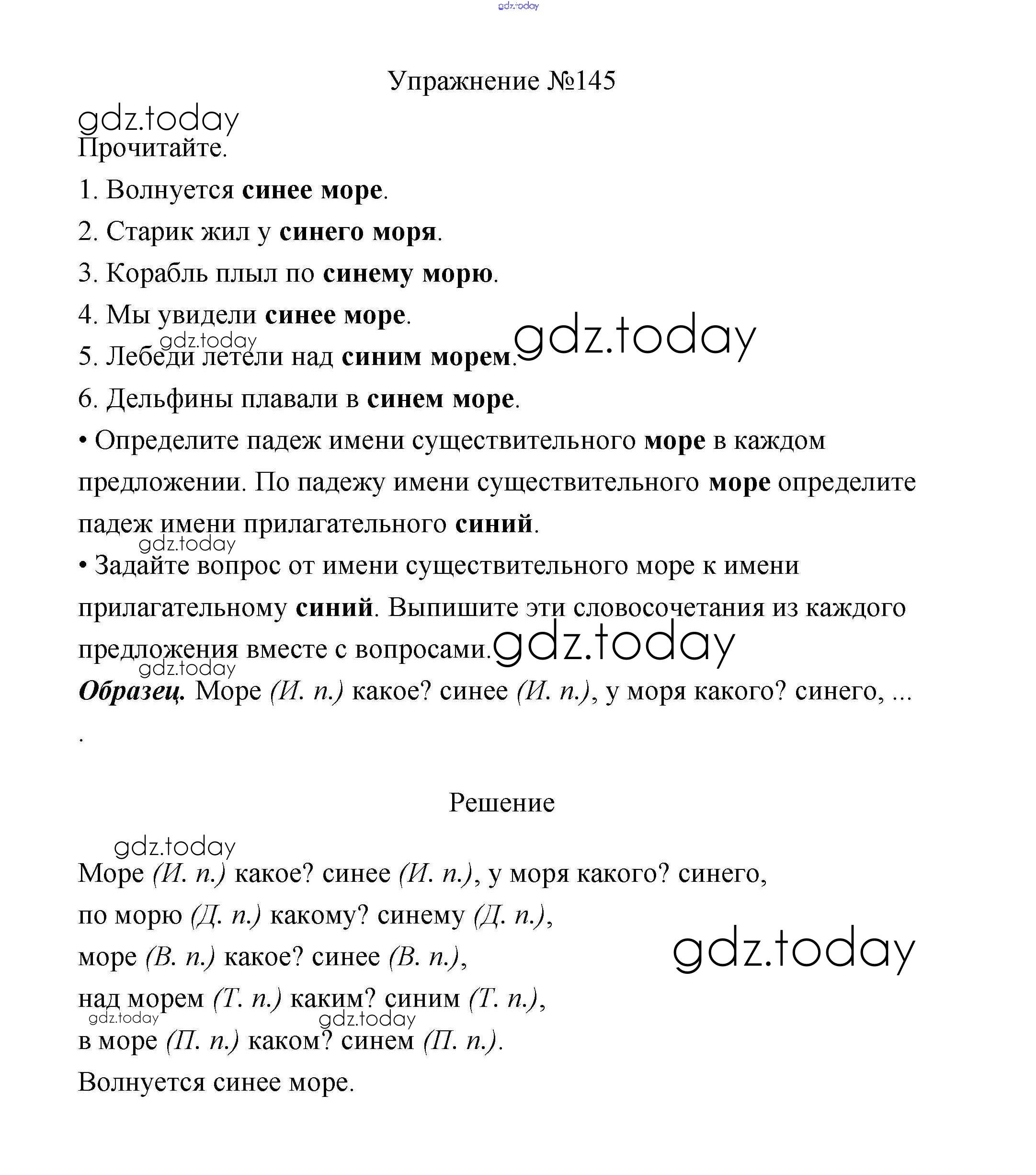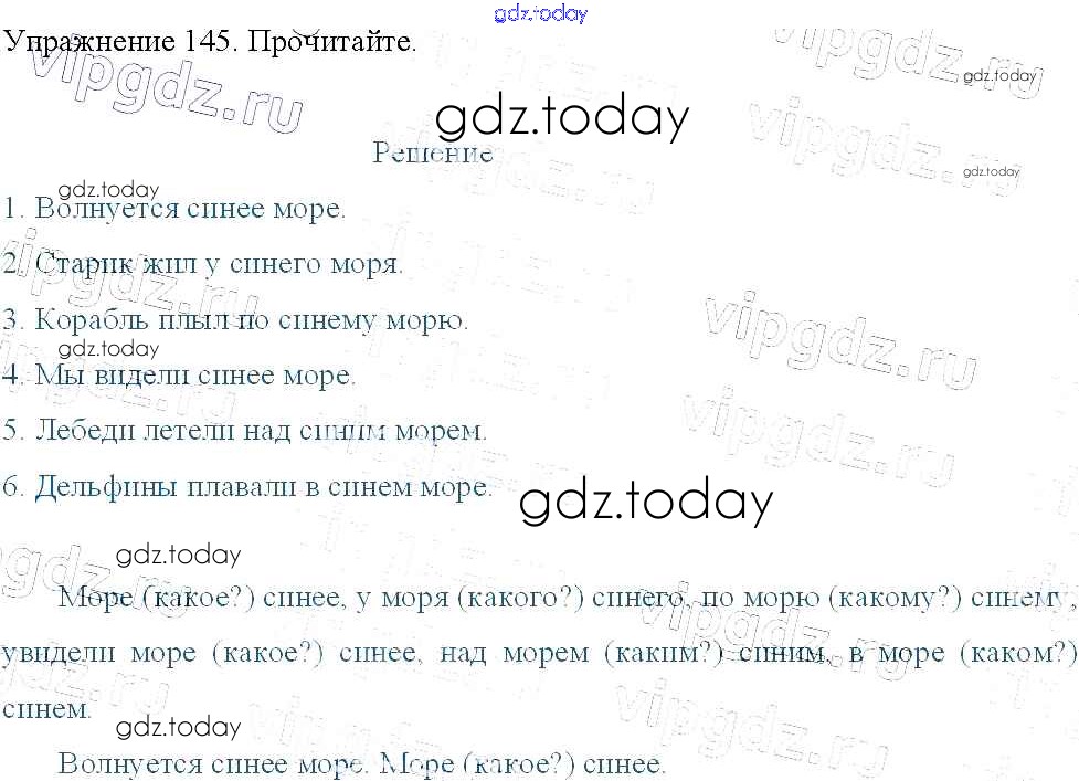На страницах сайта gdz.today вы найдете учебный и вспомогательный материал, направленный на улучшения знаний школьной программы. ГДЗ - онлайн мир знаний Упражнения Часть 2 145 Учебнику по Русскому языку для 3 класса Канакина, Горецкий Просвещение Школа России 2013