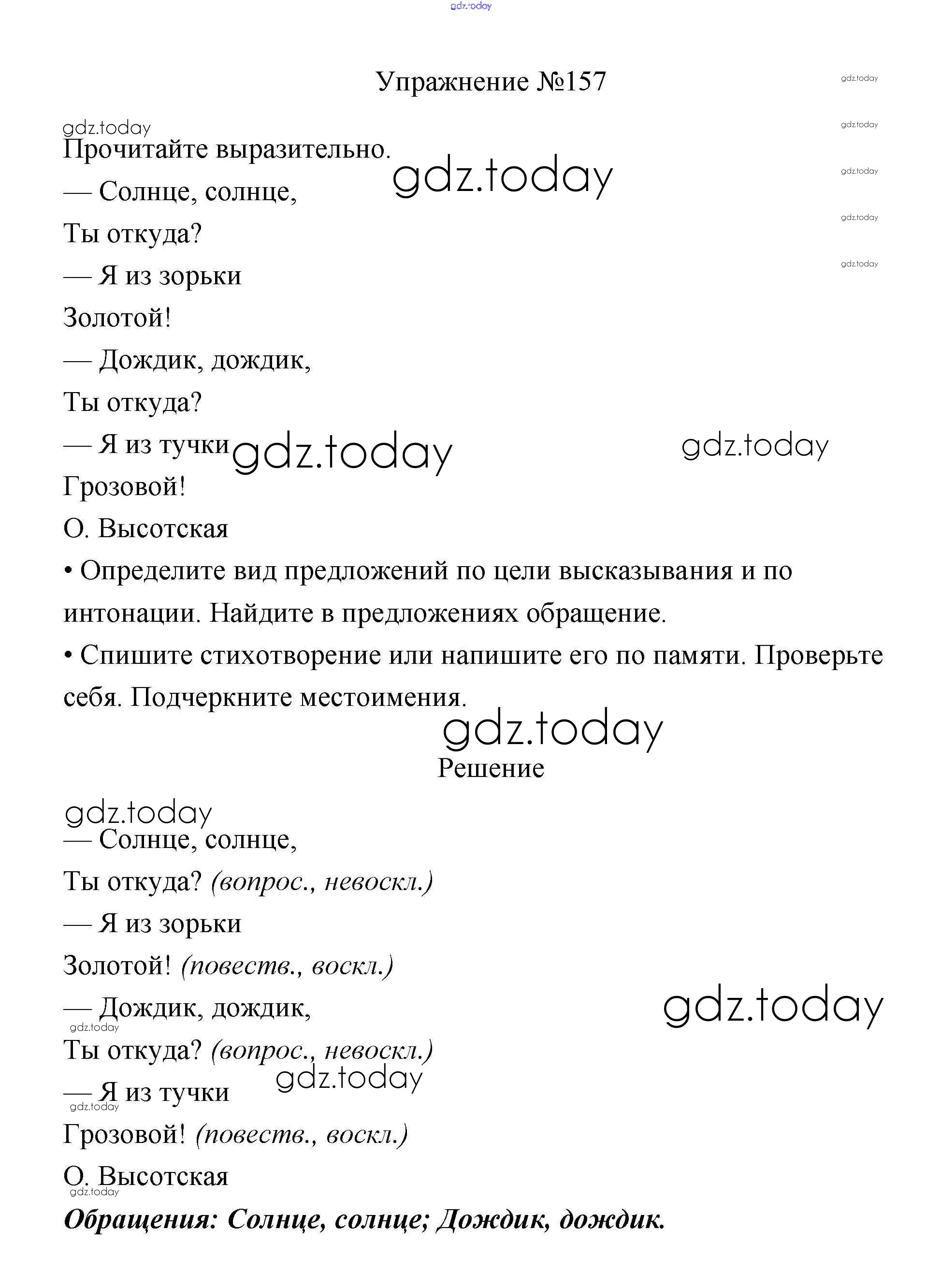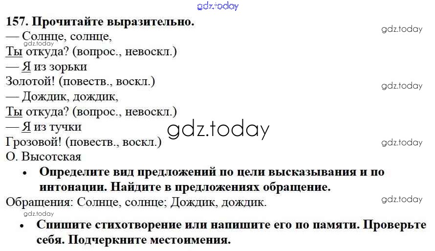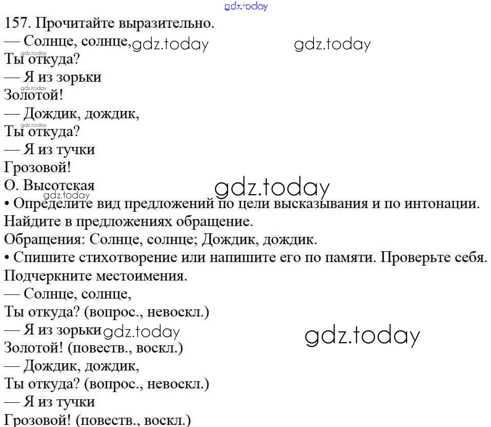 На страницах сайта gdz.today вы найдете учебный и вспомогательный материал, направленный на улучшения знаний школьной программы. ГДЗ - онлайн мир знаний Упражнения Часть 2 157 Учебнику по Русскому языку для 3 класса Канакина, Горецкий Просвещение Школа России 2013