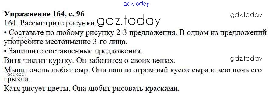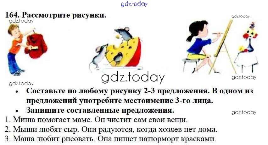 На страницах сайта gdz.today вы найдете учебный и вспомогательный материал, направленный на улучшения знаний школьной программы. ГДЗ - онлайн мир знаний Упражнения Часть 2 164 Учебнику по Русскому языку для 3 класса Канакина, Горецкий Просвещение Школа России 2013
