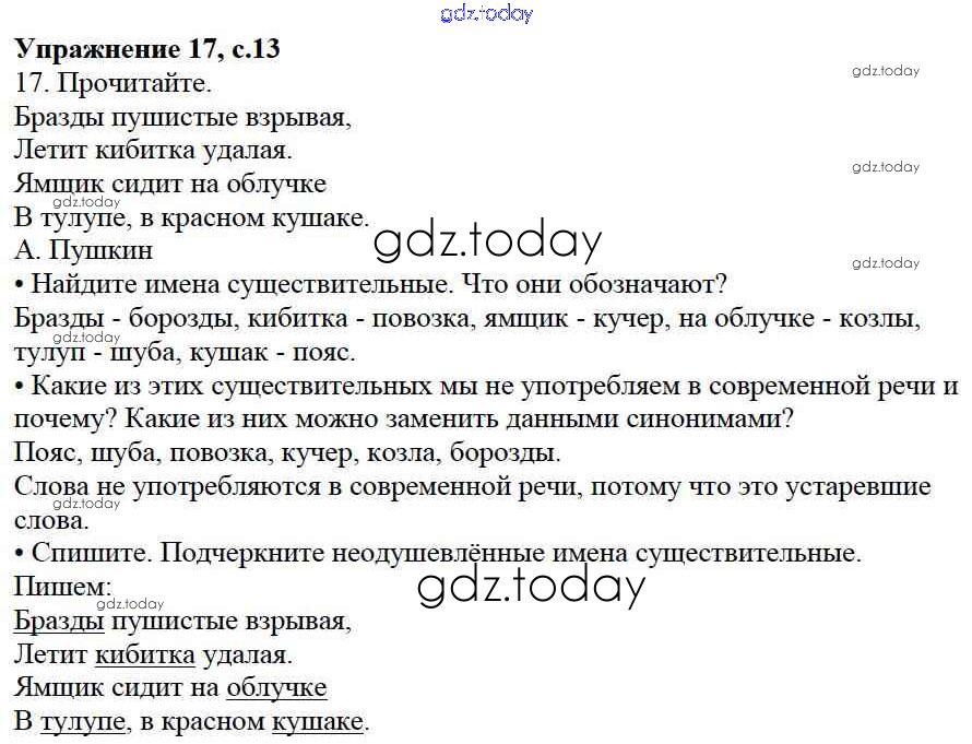 На страницах сайта gdz.today вы найдете учебный и вспомогательный материал, направленный на улучшения знаний школьной программы. ГДЗ - онлайн мир знаний Упражнения Часть 2 17 Учебнику по Русскому языку для 3 класса Канакина, Горецкий Просвещение Школа России 2013