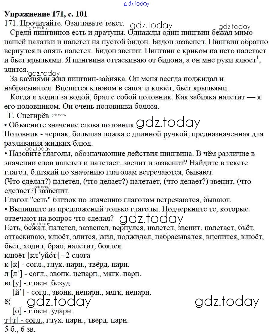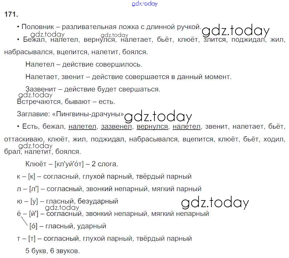 Ответы к Упражнения Часть 2 171 Учебнику по Русскому языку для 3 класса Канакина, Горецкий Просвещение Школа России 2013