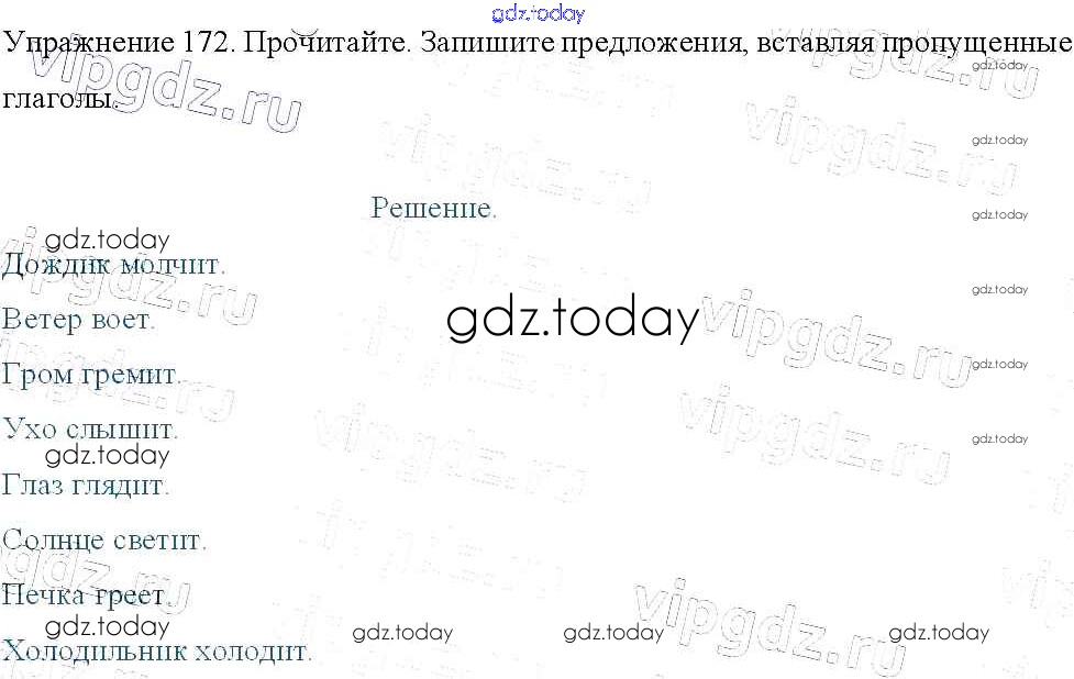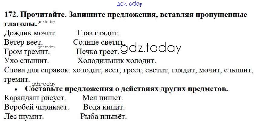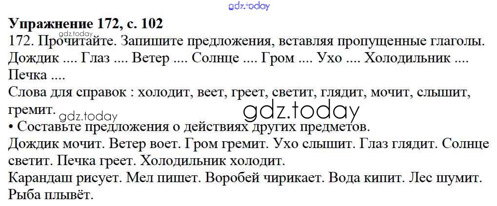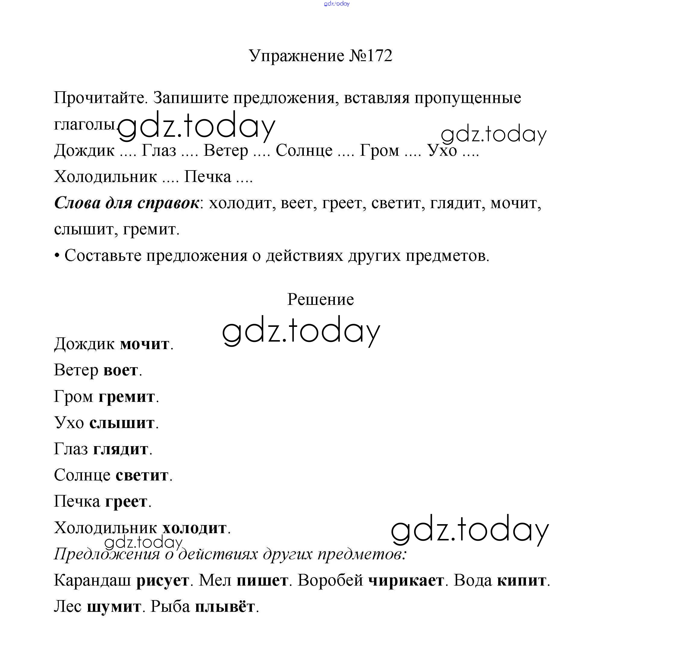 На страницах сайта gdz.today вы найдете учебный и вспомогательный материал, направленный на улучшения знаний школьной программы. ГДЗ - онлайн мир знаний Упражнения Часть 2 172 Учебнику по Русскому языку для 3 класса Канакина, Горецкий Просвещение Школа России 2013