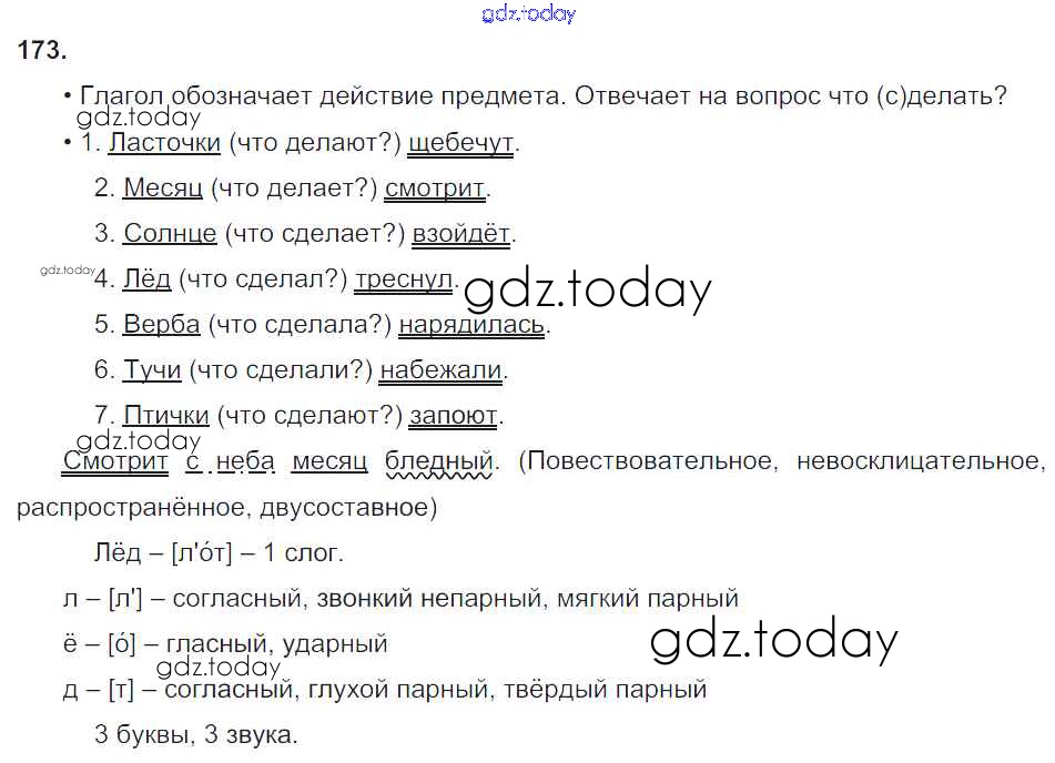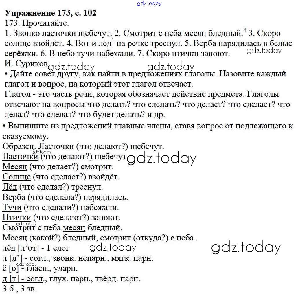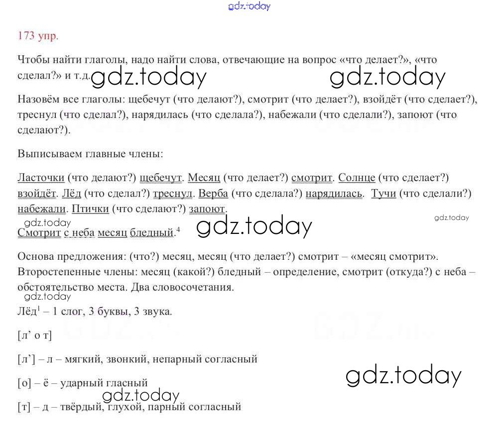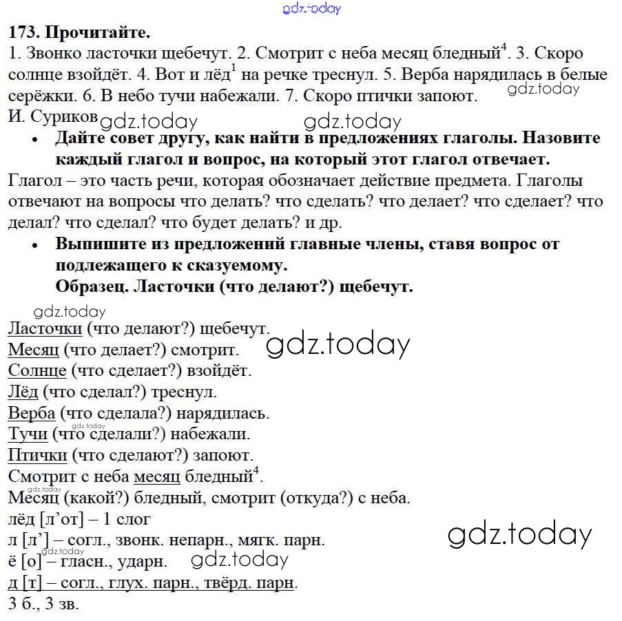На страницах сайта gdz.today вы найдете учебный и вспомогательный материал, направленный на улучшения знаний школьной программы. ГДЗ - онлайн мир знаний Упражнения Часть 2 173 Учебнику по Русскому языку для 3 класса Канакина, Горецкий Просвещение Школа России 2013