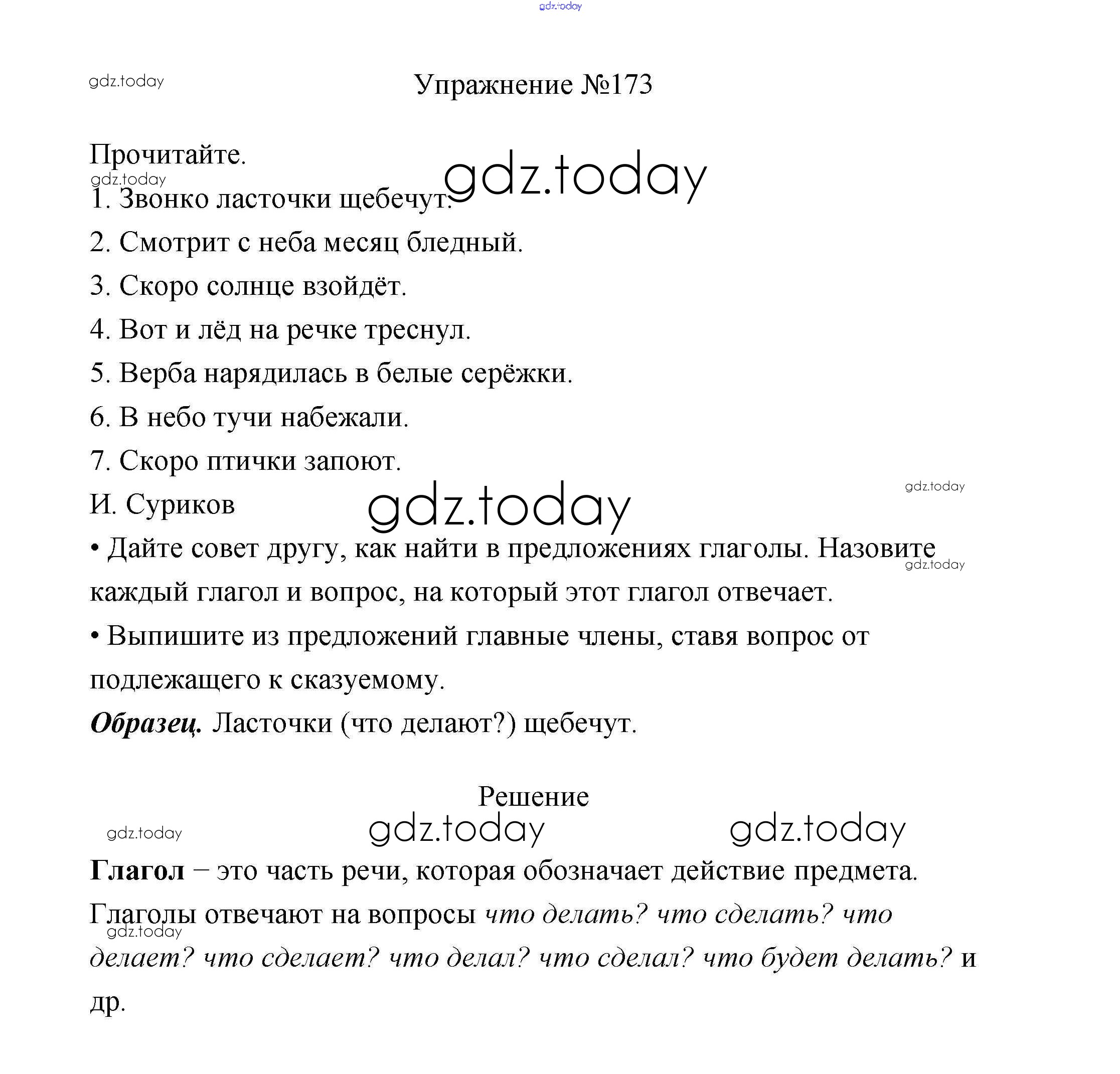 Ответы к Упражнения Часть 2 173 Учебнику по Русскому языку для 3 класса Канакина, Горецкий Просвещение Школа России 2013