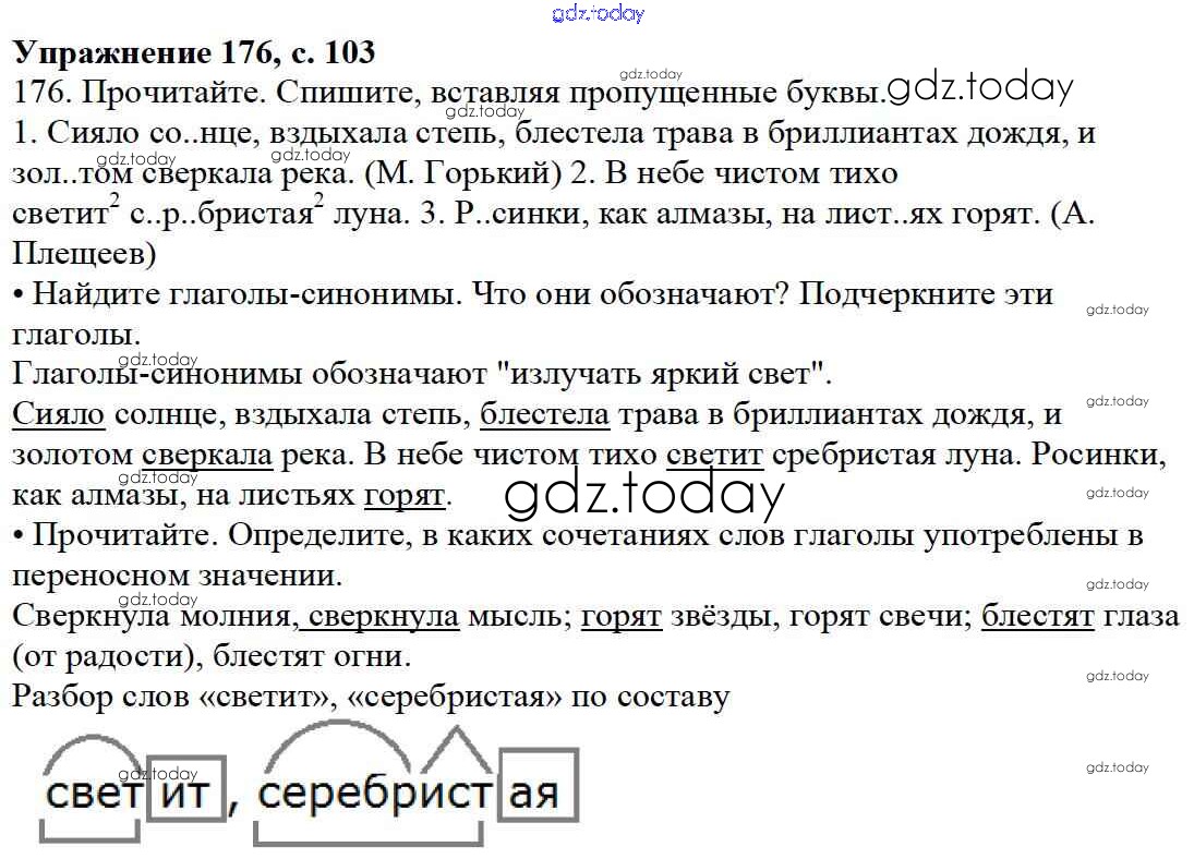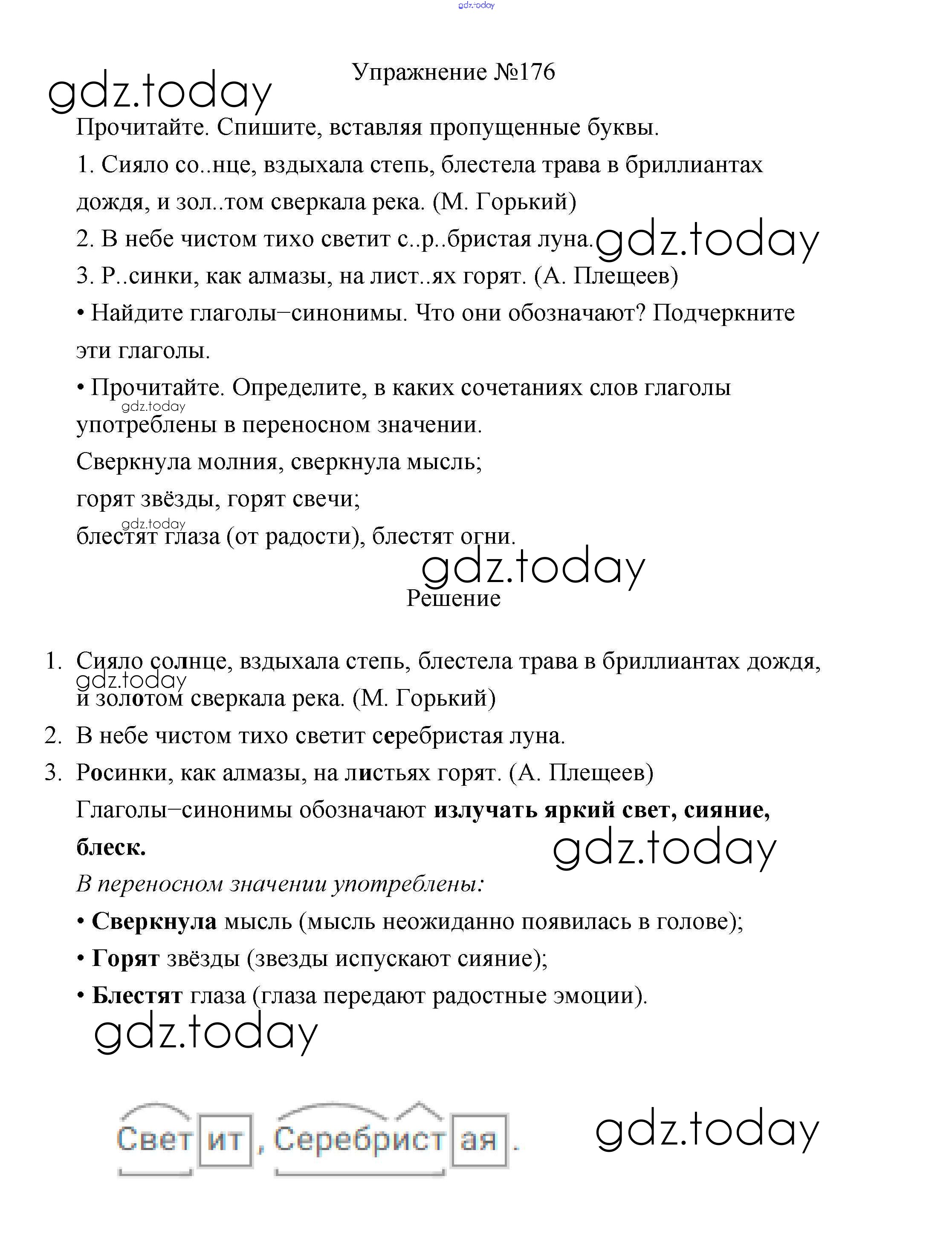 На страницах сайта gdz.today вы найдете учебный и вспомогательный материал, направленный на улучшения знаний школьной программы. ГДЗ - онлайн мир знаний Упражнения Часть 2 176 Учебнику по Русскому языку для 3 класса Канакина, Горецкий Просвещение Школа России 2013