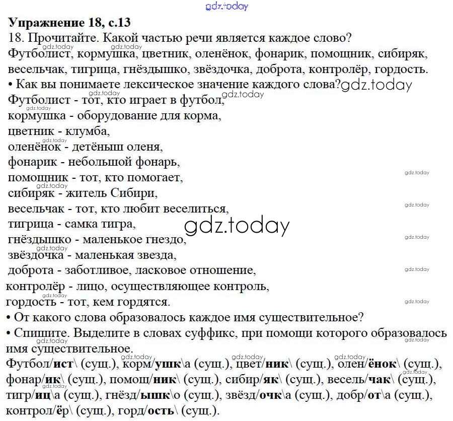 На страницах сайта gdz.today вы найдете учебный и вспомогательный материал, направленный на улучшения знаний школьной программы. ГДЗ - онлайн мир знаний Упражнения Часть 2 18 Учебнику по Русскому языку для 3 класса Канакина, Горецкий Просвещение Школа России 2013