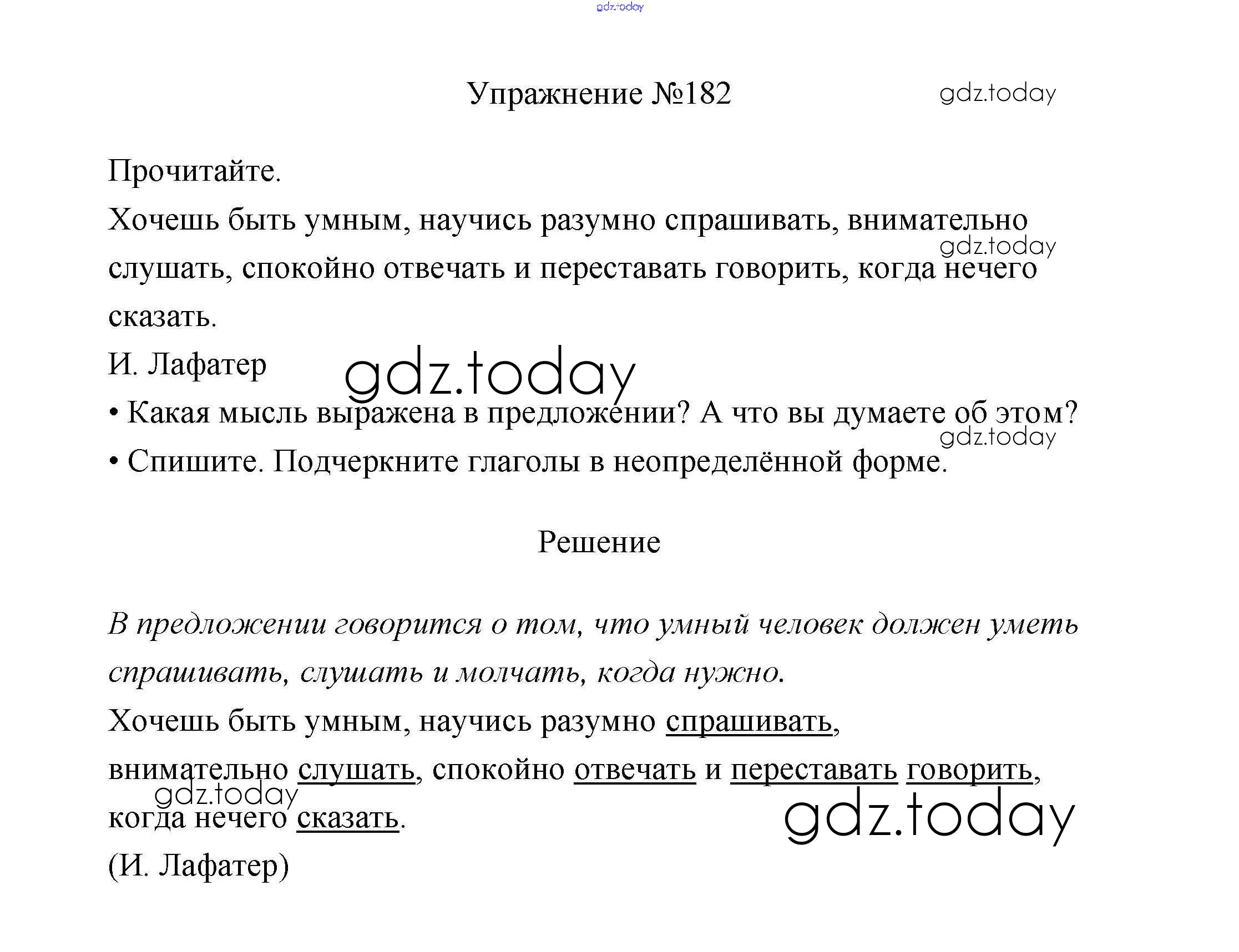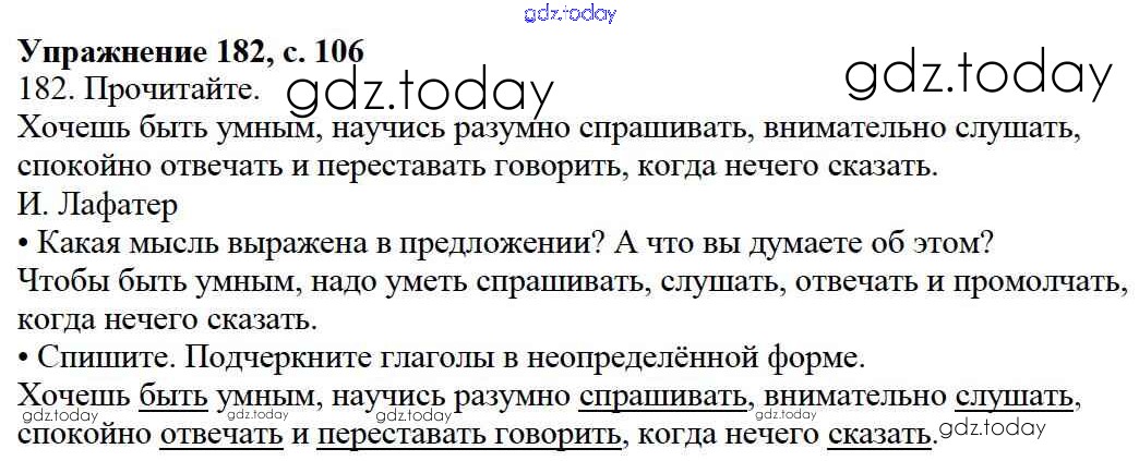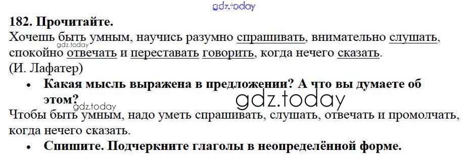 На страницах сайта gdz.today вы найдете учебный и вспомогательный материал, направленный на улучшения знаний школьной программы. ГДЗ - онлайн мир знаний Упражнения Часть 2 182 Учебнику по Русскому языку для 3 класса Канакина, Горецкий Просвещение Школа России 2013