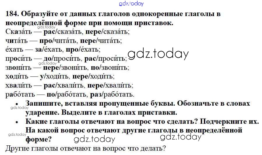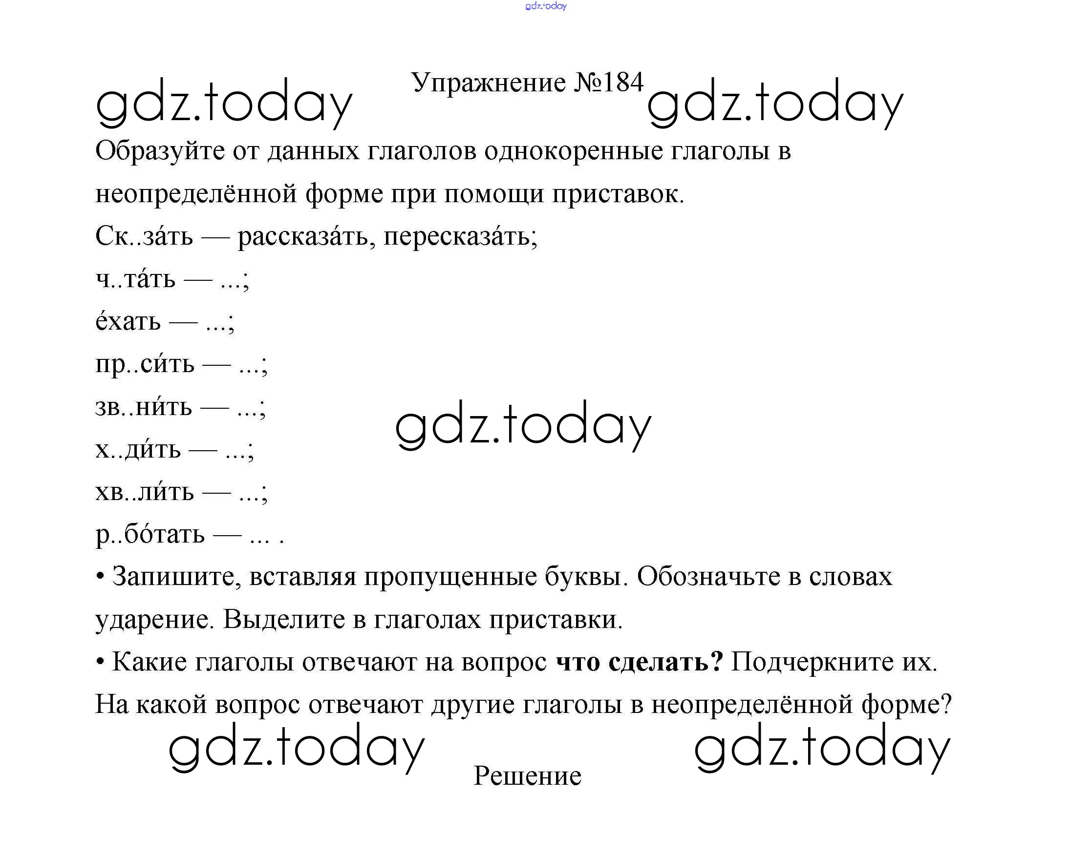 На страницах сайта gdz.today вы найдете учебный и вспомогательный материал, направленный на улучшения знаний школьной программы. ГДЗ - онлайн мир знаний Упражнения Часть 2 184 Учебнику по Русскому языку для 3 класса Канакина, Горецкий Просвещение Школа России 2013