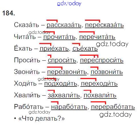 Ответы к Упражнения Часть 2 184 Учебнику по Русскому языку для 3 класса Канакина, Горецкий Просвещение Школа России 2013