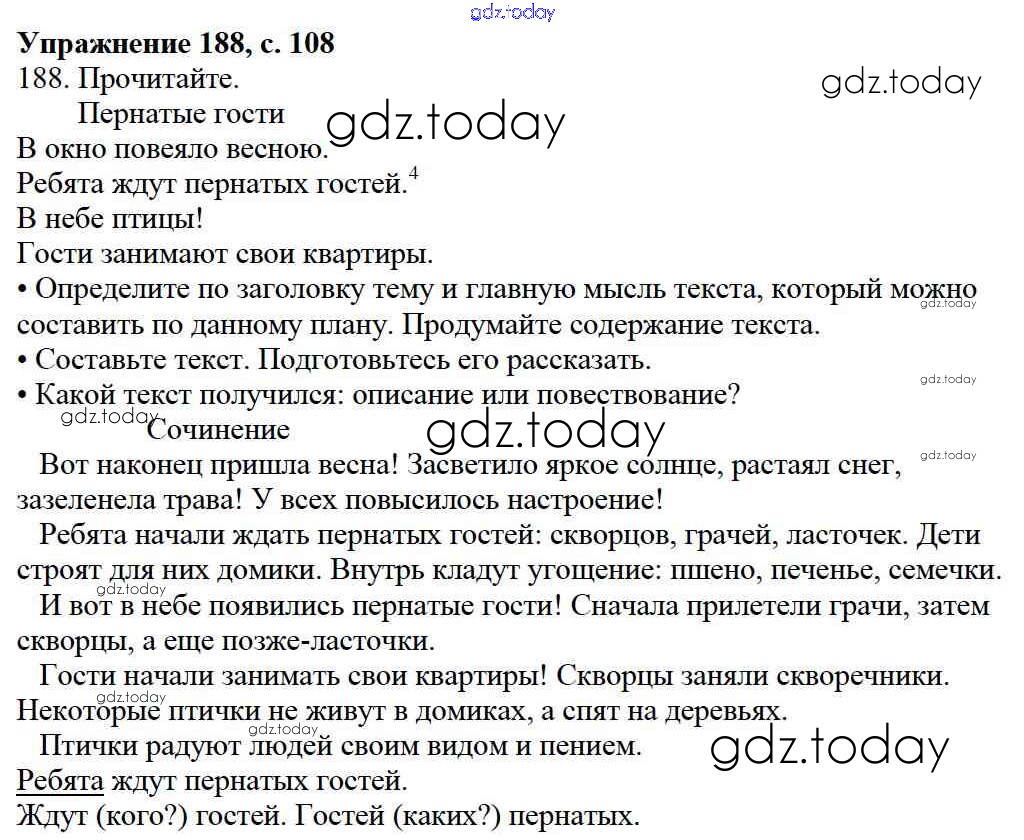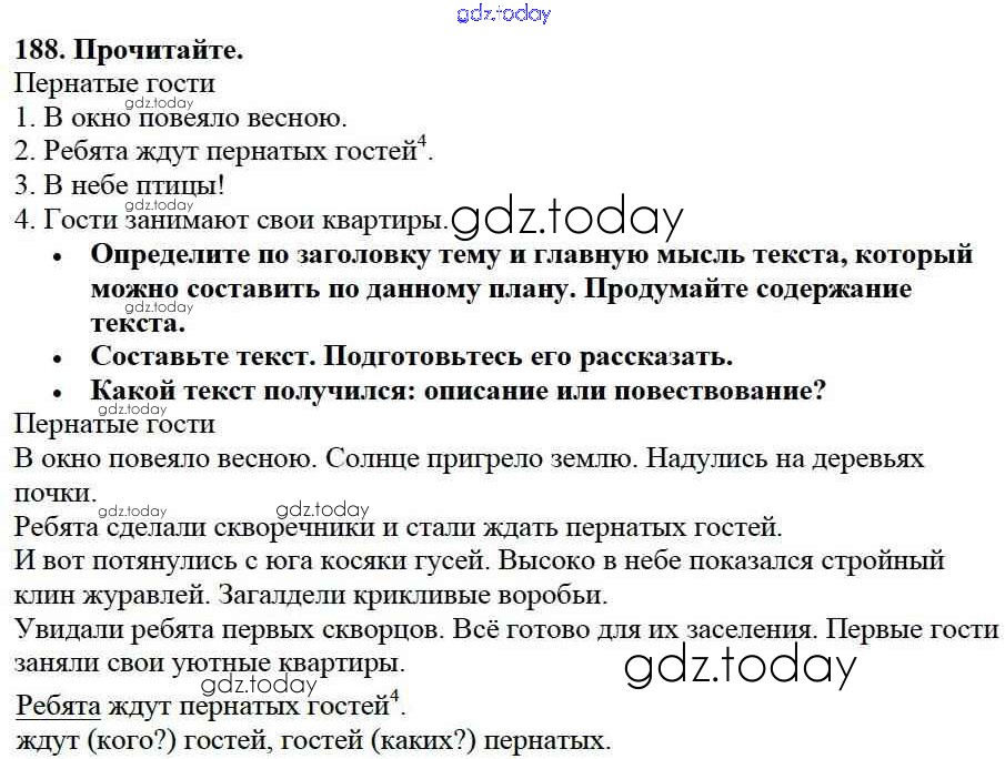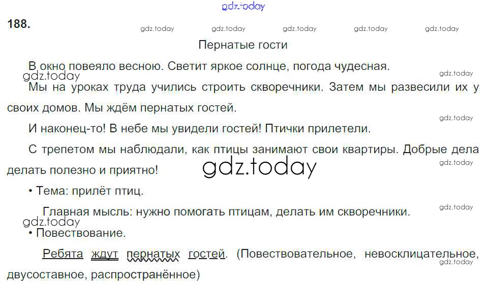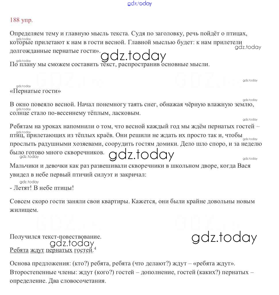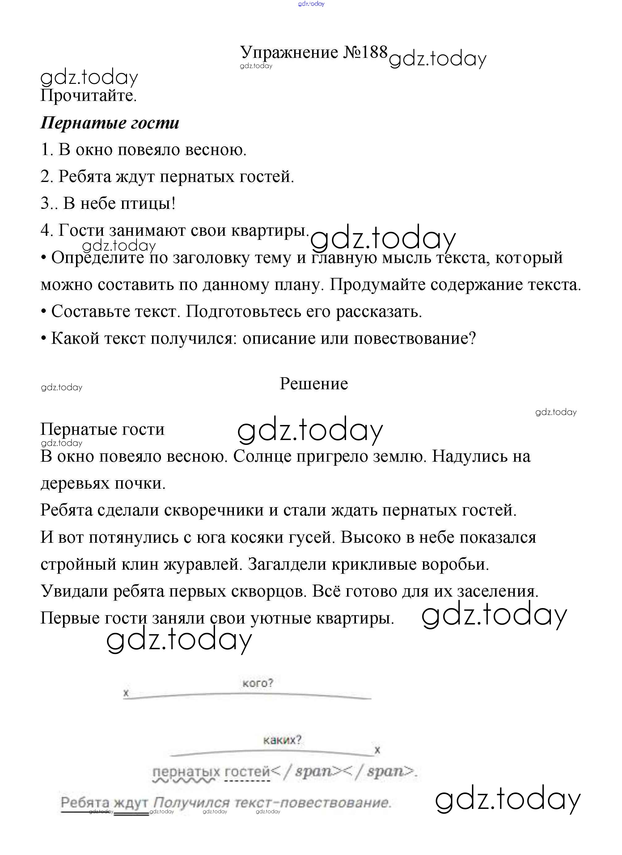 На страницах сайта gdz.today вы найдете учебный и вспомогательный материал, направленный на улучшения знаний школьной программы. ГДЗ - онлайн мир знаний Упражнения Часть 2 188 Учебнику по Русскому языку для 3 класса Канакина, Горецкий Просвещение Школа России 2013