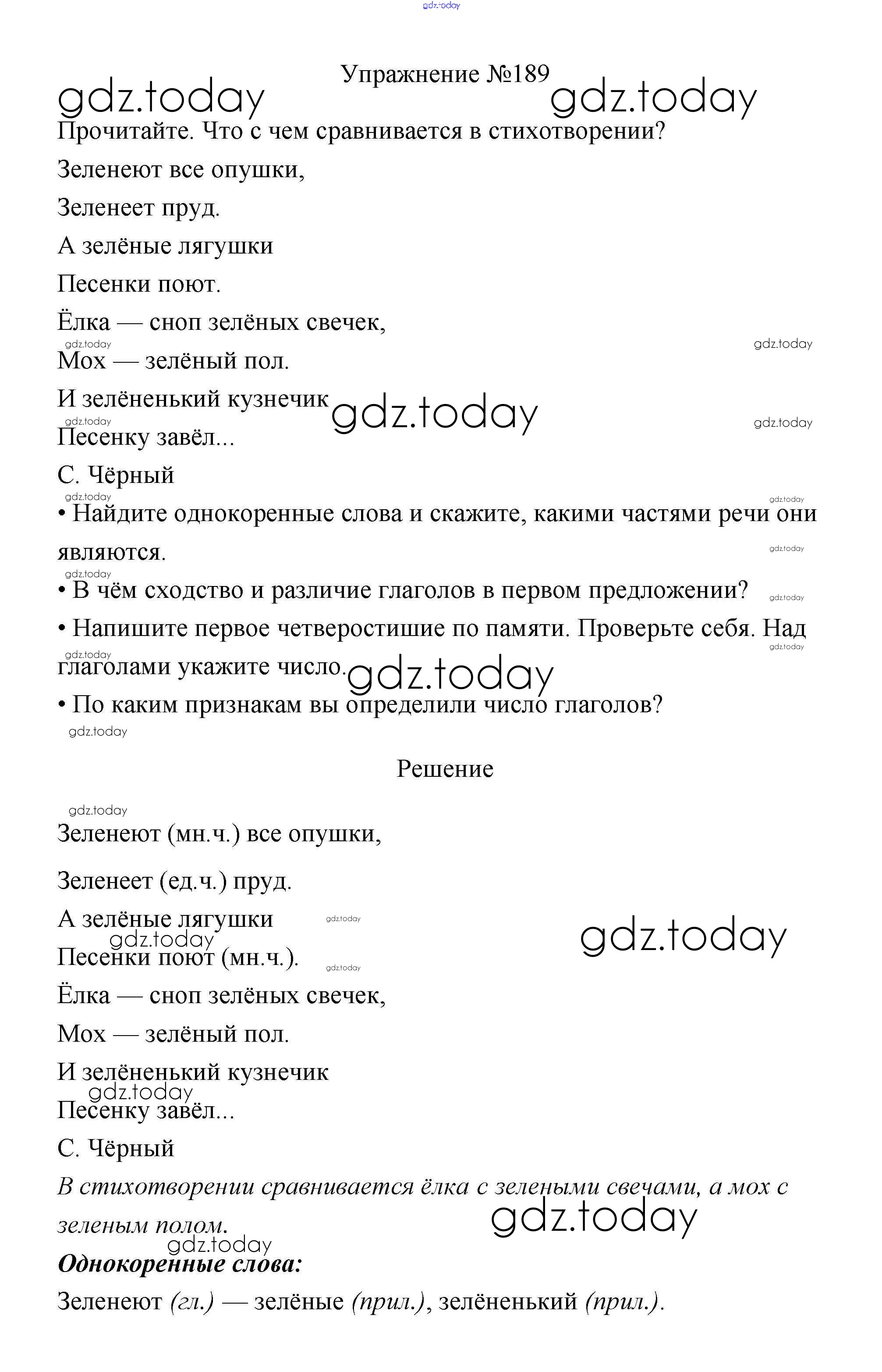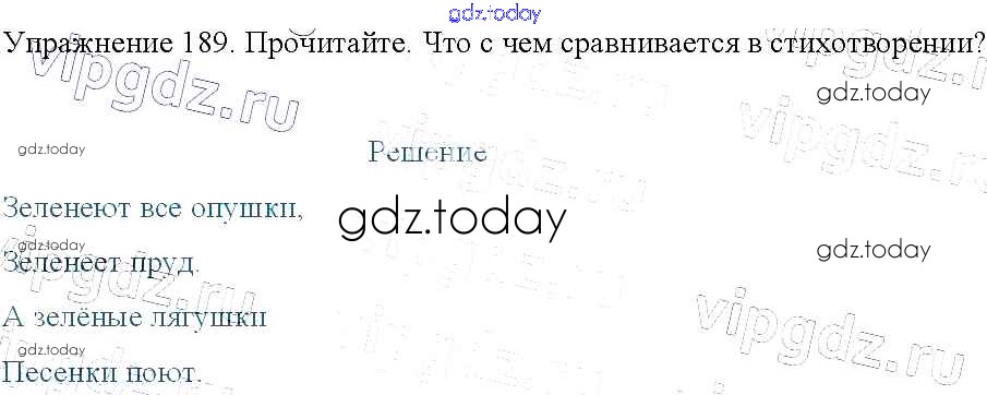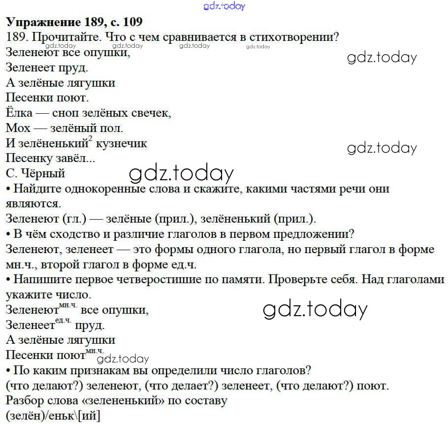 На страницах сайта gdz.today вы найдете учебный и вспомогательный материал, направленный на улучшения знаний школьной программы. ГДЗ - онлайн мир знаний Упражнения Часть 2 189 Учебнику по Русскому языку для 3 класса Канакина, Горецкий Просвещение Школа России 2013