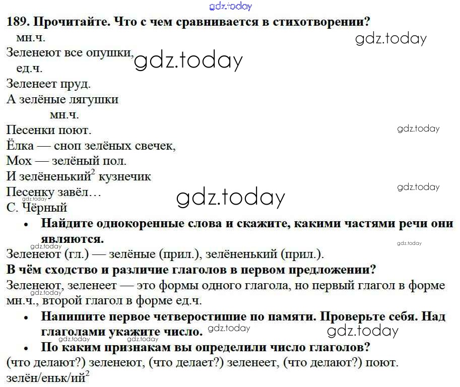 Ответы к Упражнения Часть 2 189 Учебнику по Русскому языку для 3 класса Канакина, Горецкий Просвещение Школа России 2013
