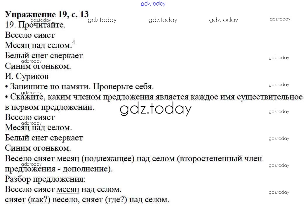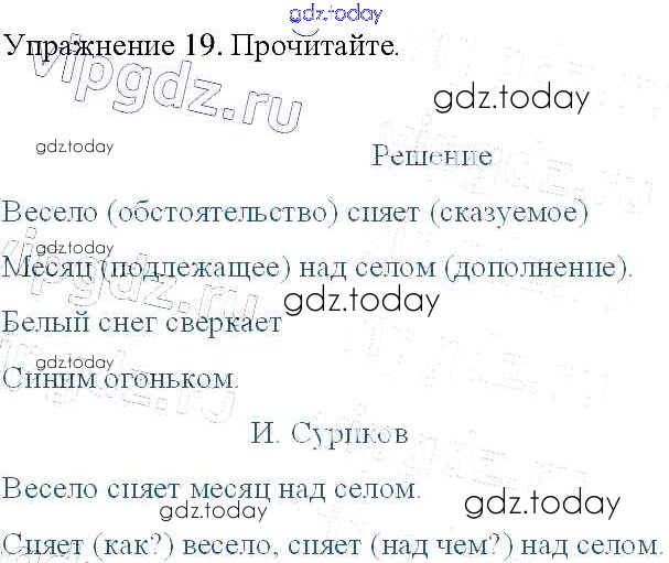 На страницах сайта gdz.today вы найдете учебный и вспомогательный материал, направленный на улучшения знаний школьной программы. ГДЗ - онлайн мир знаний Упражнения Часть 2 19 Учебнику по Русскому языку для 3 класса Канакина, Горецкий Просвещение Школа России 2013