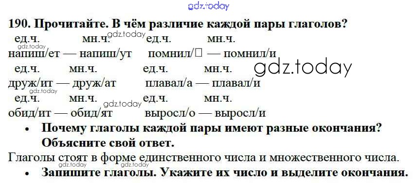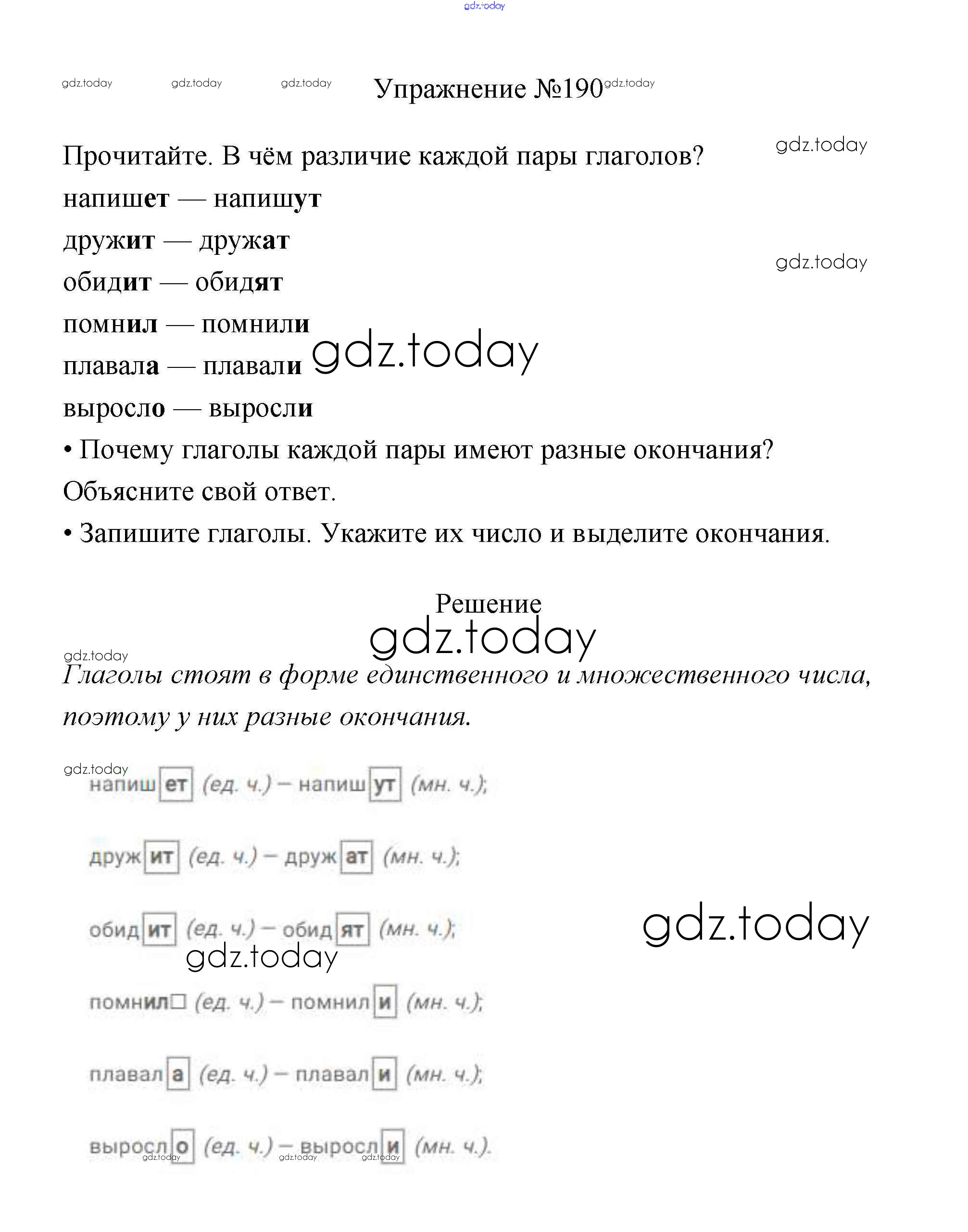 На страницах сайта gdz.today вы найдете учебный и вспомогательный материал, направленный на улучшения знаний школьной программы. ГДЗ - онлайн мир знаний Упражнения Часть 2 190 Учебнику по Русскому языку для 3 класса Канакина, Горецкий Просвещение Школа России 2013