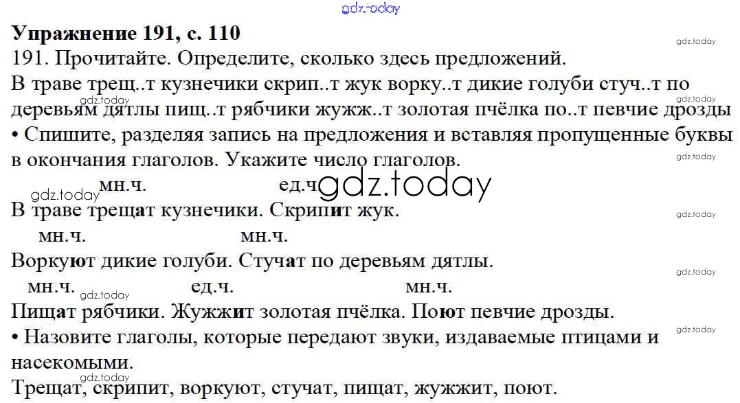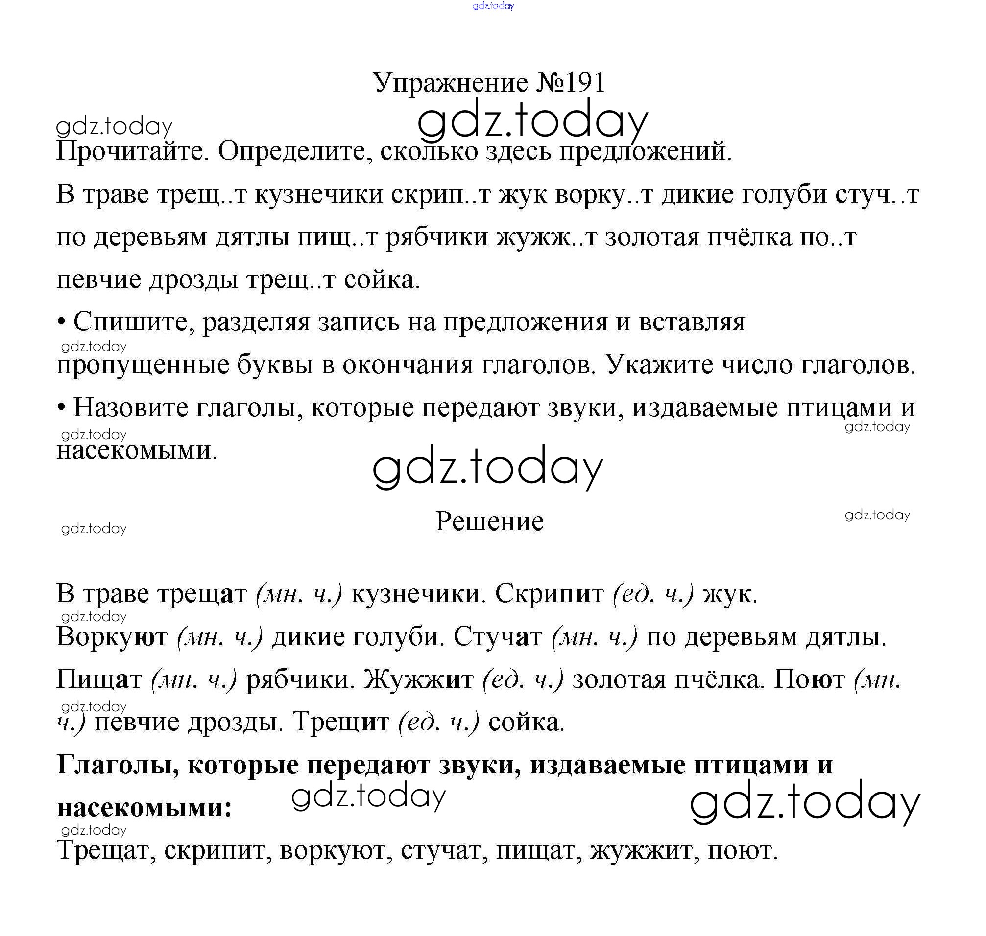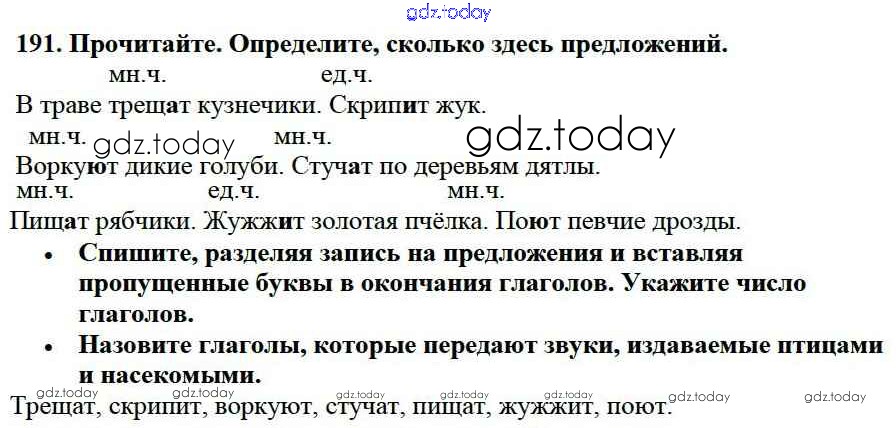 На страницах сайта gdz.today вы найдете учебный и вспомогательный материал, направленный на улучшения знаний школьной программы. ГДЗ - онлайн мир знаний Упражнения Часть 2 191 Учебнику по Русскому языку для 3 класса Канакина, Горецкий Просвещение Школа России 2013