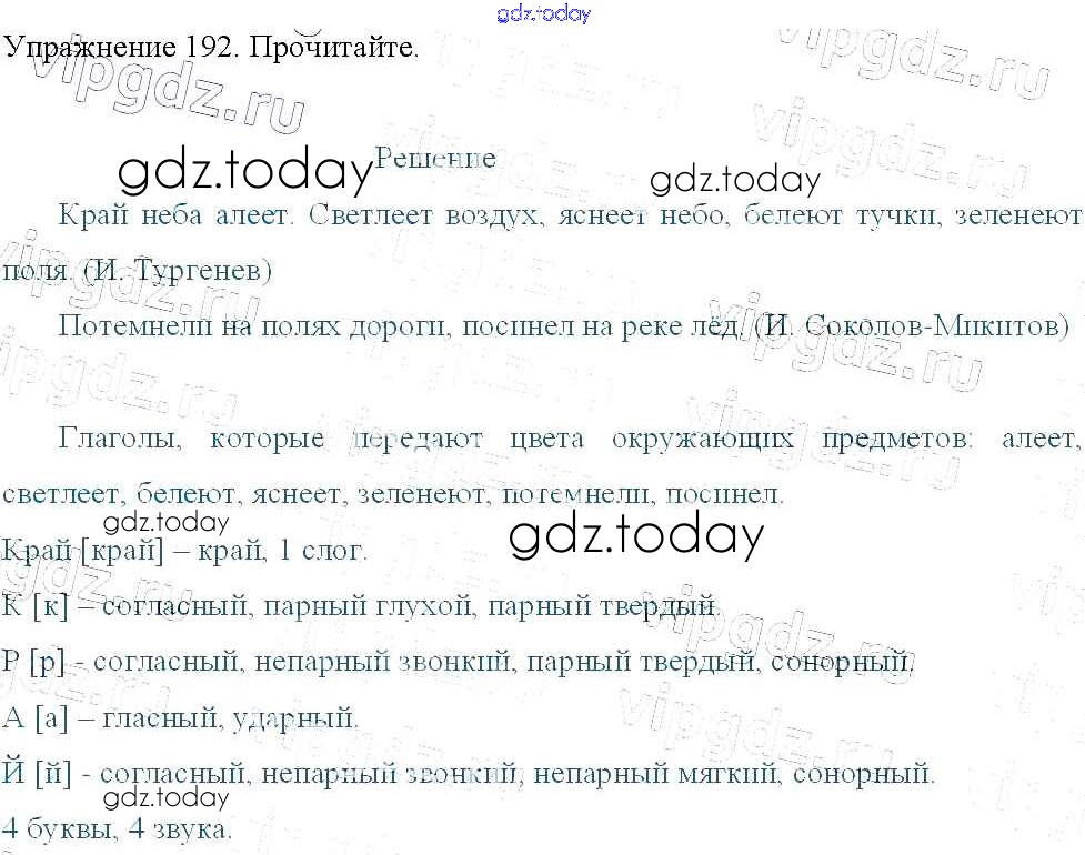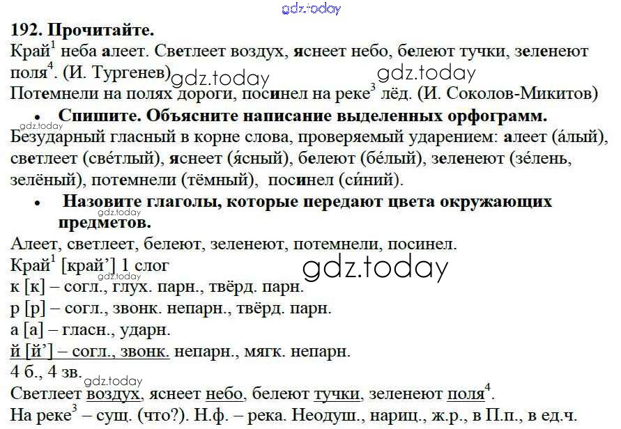 Ответы к Упражнения Часть 2 192 Учебнику по Русскому языку для 3 класса Канакина, Горецкий Просвещение Школа России 2013
