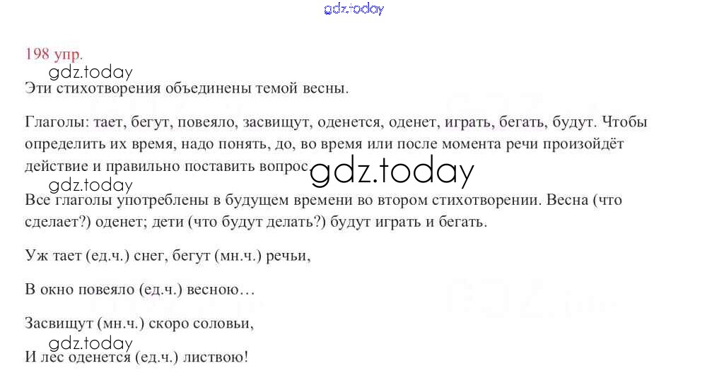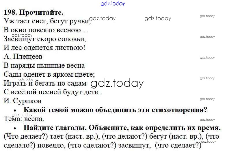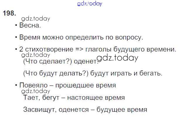 Ответы к Упражнения Часть 2 198 Учебнику по Русскому языку для 3 класса Канакина, Горецкий Просвещение Школа России 2013