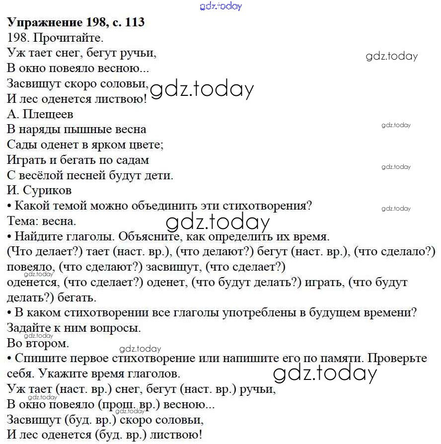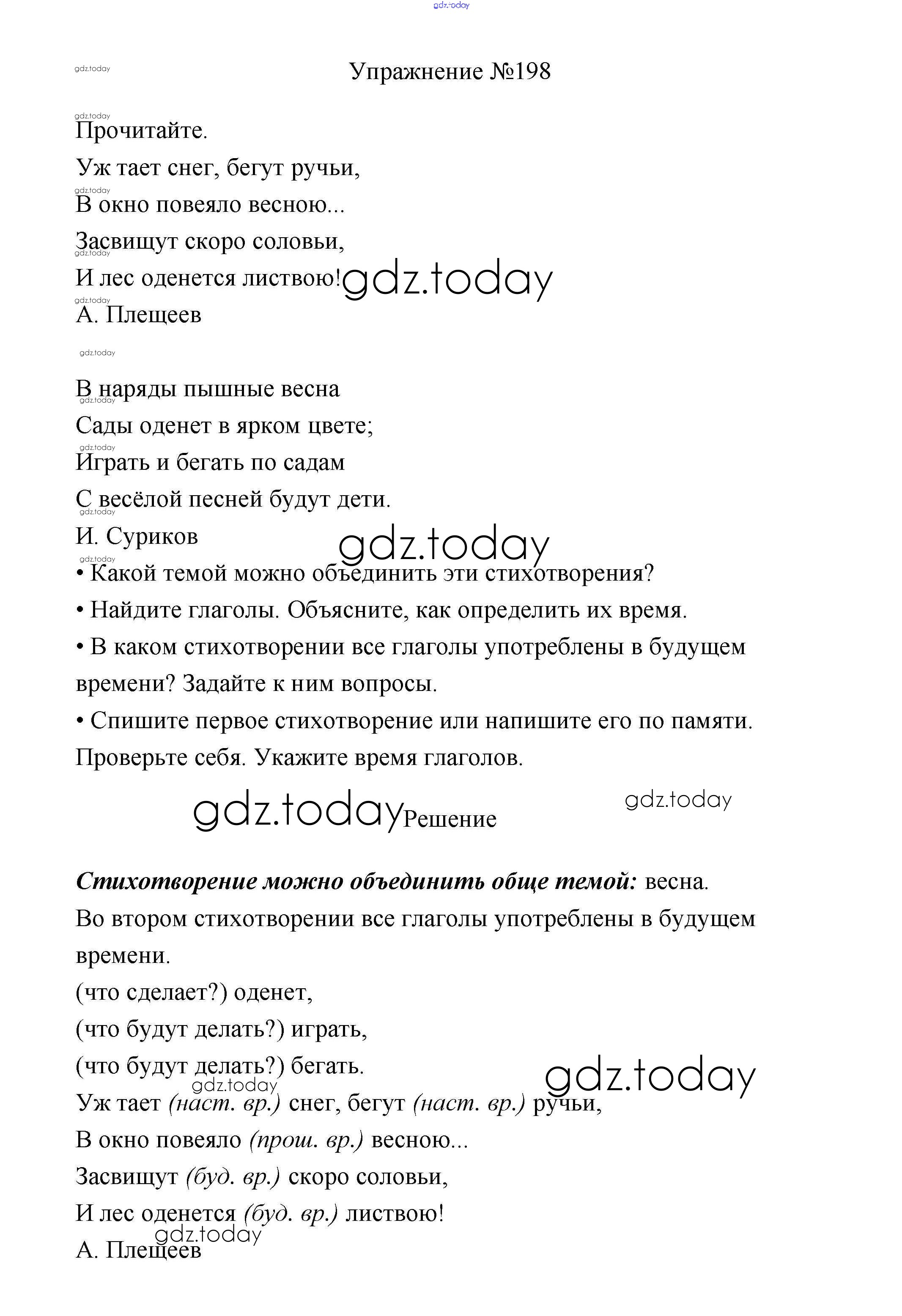 На страницах сайта gdz.today вы найдете учебный и вспомогательный материал, направленный на улучшения знаний школьной программы. ГДЗ - онлайн мир знаний Упражнения Часть 2 198 Учебнику по Русскому языку для 3 класса Канакина, Горецкий Просвещение Школа России 2013