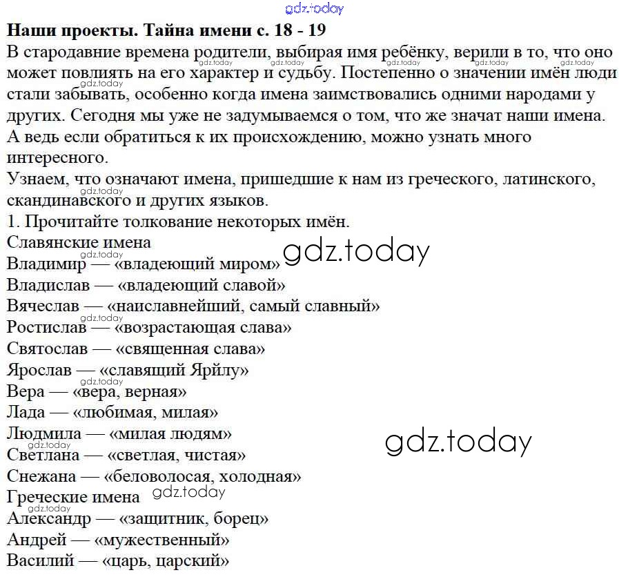 На страницах сайта gdz.today вы найдете учебный и вспомогательный материал, направленный на улучшения знаний школьной программы. ГДЗ - онлайн мир знаний Тайна имени Наши проекты 1 Учебнику по Русскому языку для 3 класса Канакина, Горецкий Просвещение Школа России 2013