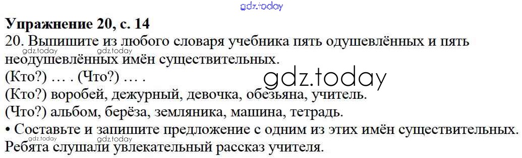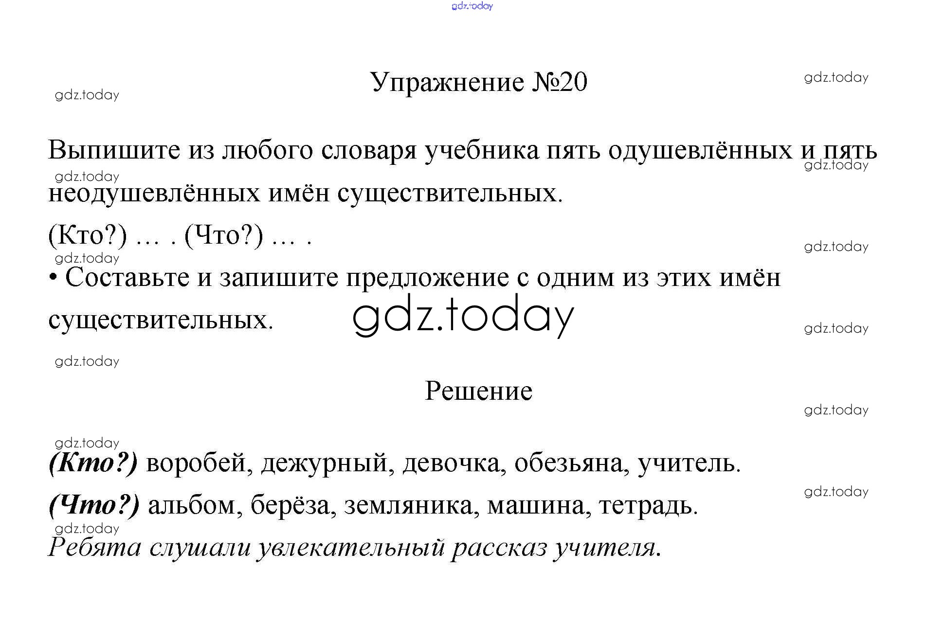 На страницах сайта gdz.today вы найдете учебный и вспомогательный материал, направленный на улучшения знаний школьной программы. ГДЗ - онлайн мир знаний Упражнения Часть 2 20 Учебнику по Русскому языку для 3 класса Канакина, Горецкий Просвещение Школа России 2013