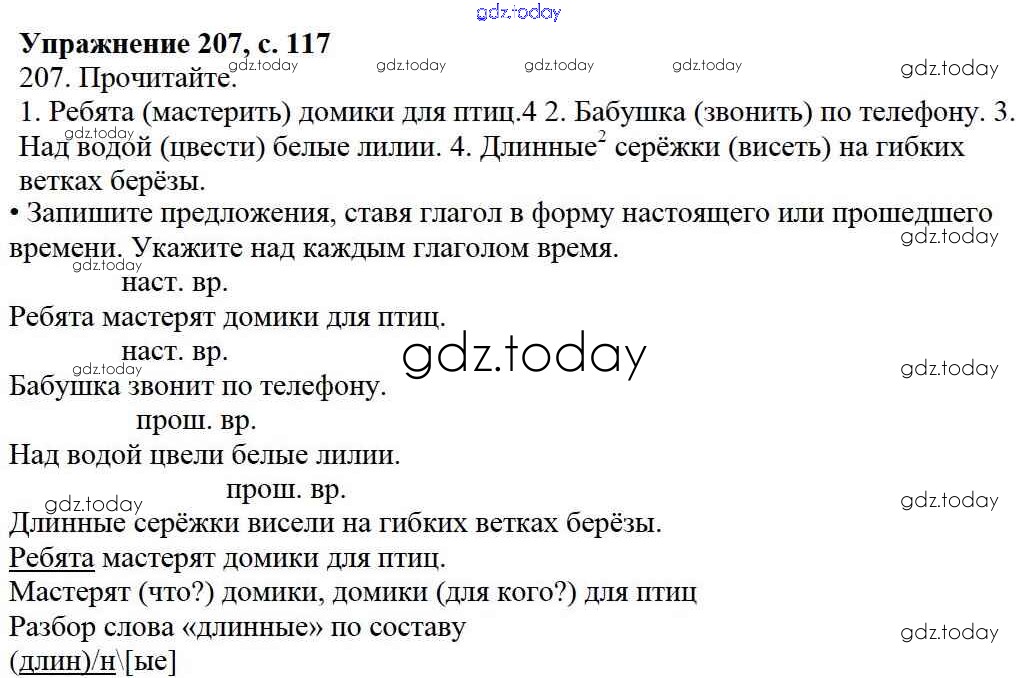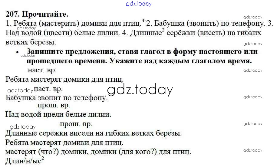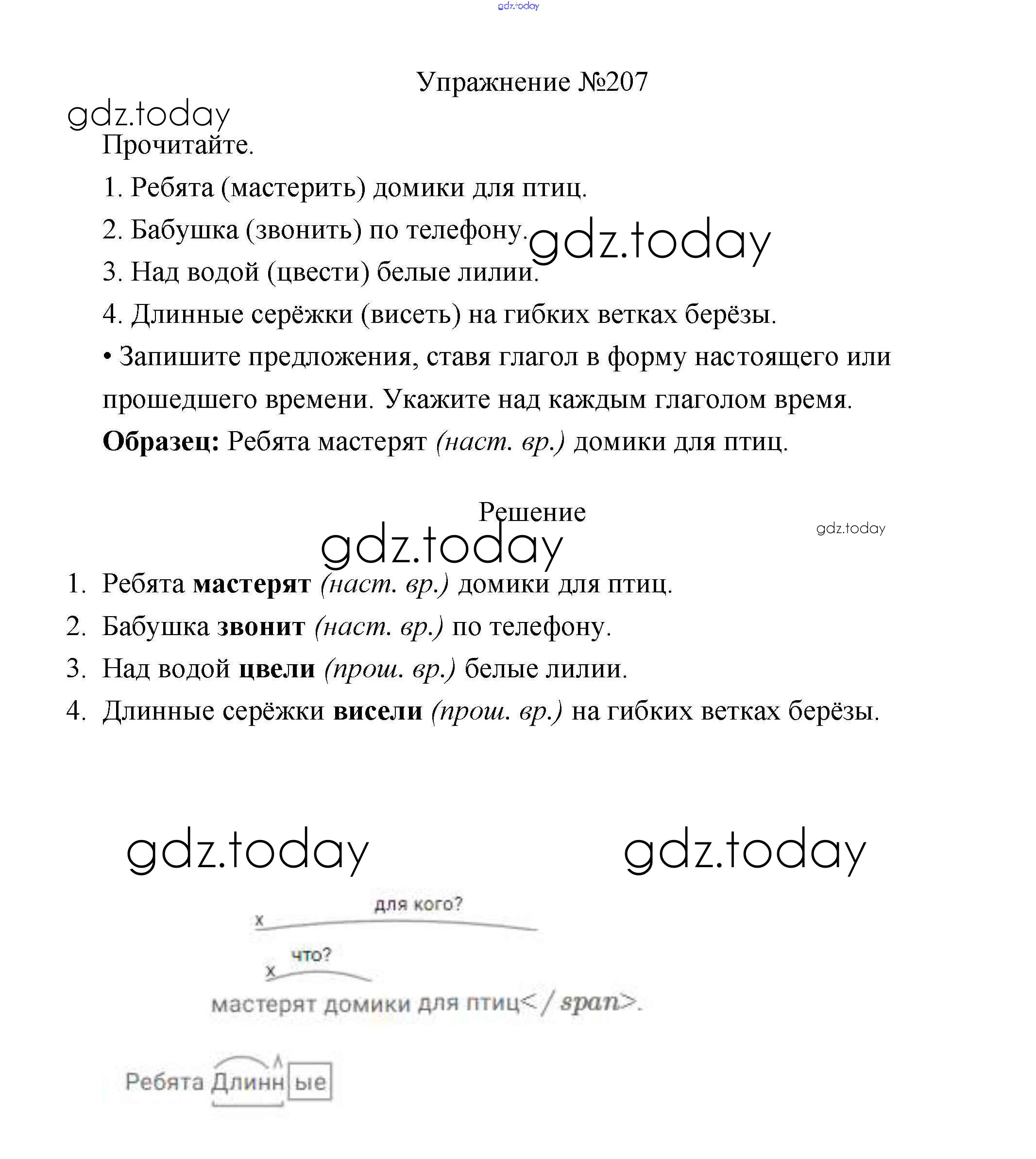 На страницах сайта gdz.today вы найдете учебный и вспомогательный материал, направленный на улучшения знаний школьной программы. ГДЗ - онлайн мир знаний Упражнения Часть 2 207 Учебнику по Русскому языку для 3 класса Канакина, Горецкий Просвещение Школа России 2013