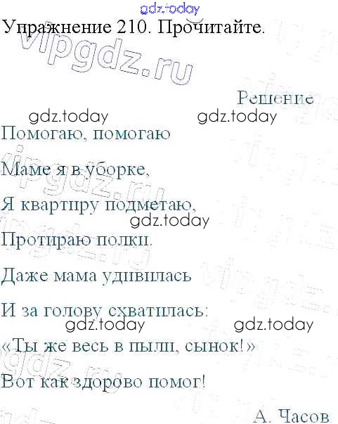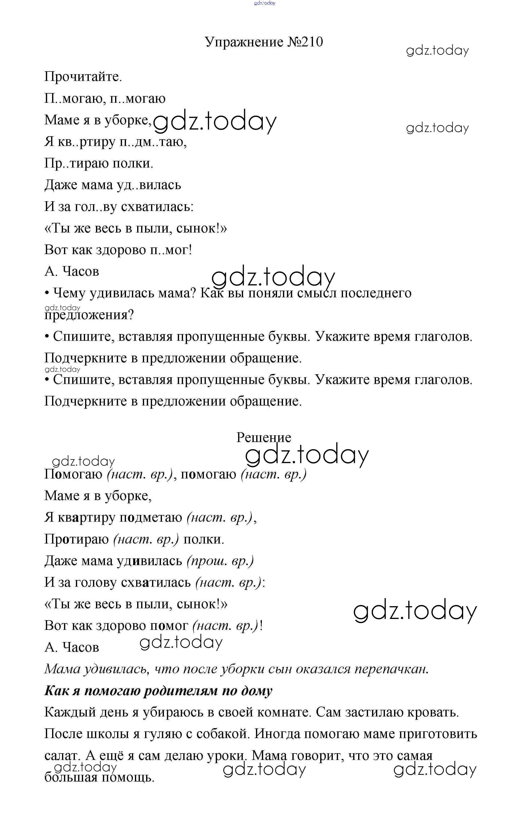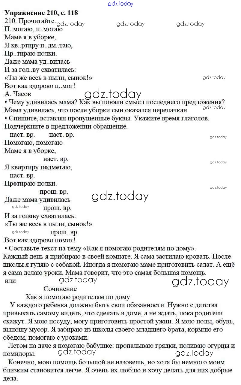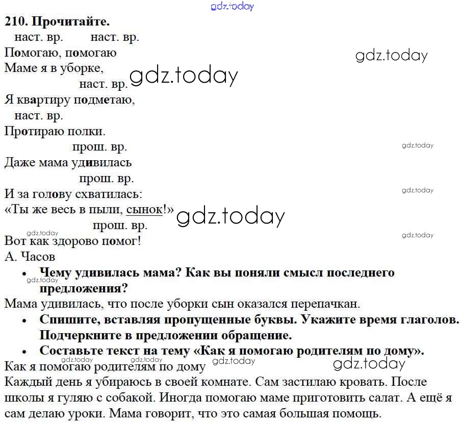На страницах сайта gdz.today вы найдете учебный и вспомогательный материал, направленный на улучшения знаний школьной программы. ГДЗ - онлайн мир знаний Упражнения Часть 2 210 Учебнику по Русскому языку для 3 класса Канакина, Горецкий Просвещение Школа России 2013