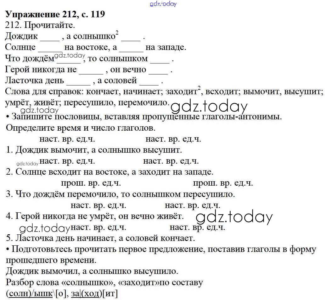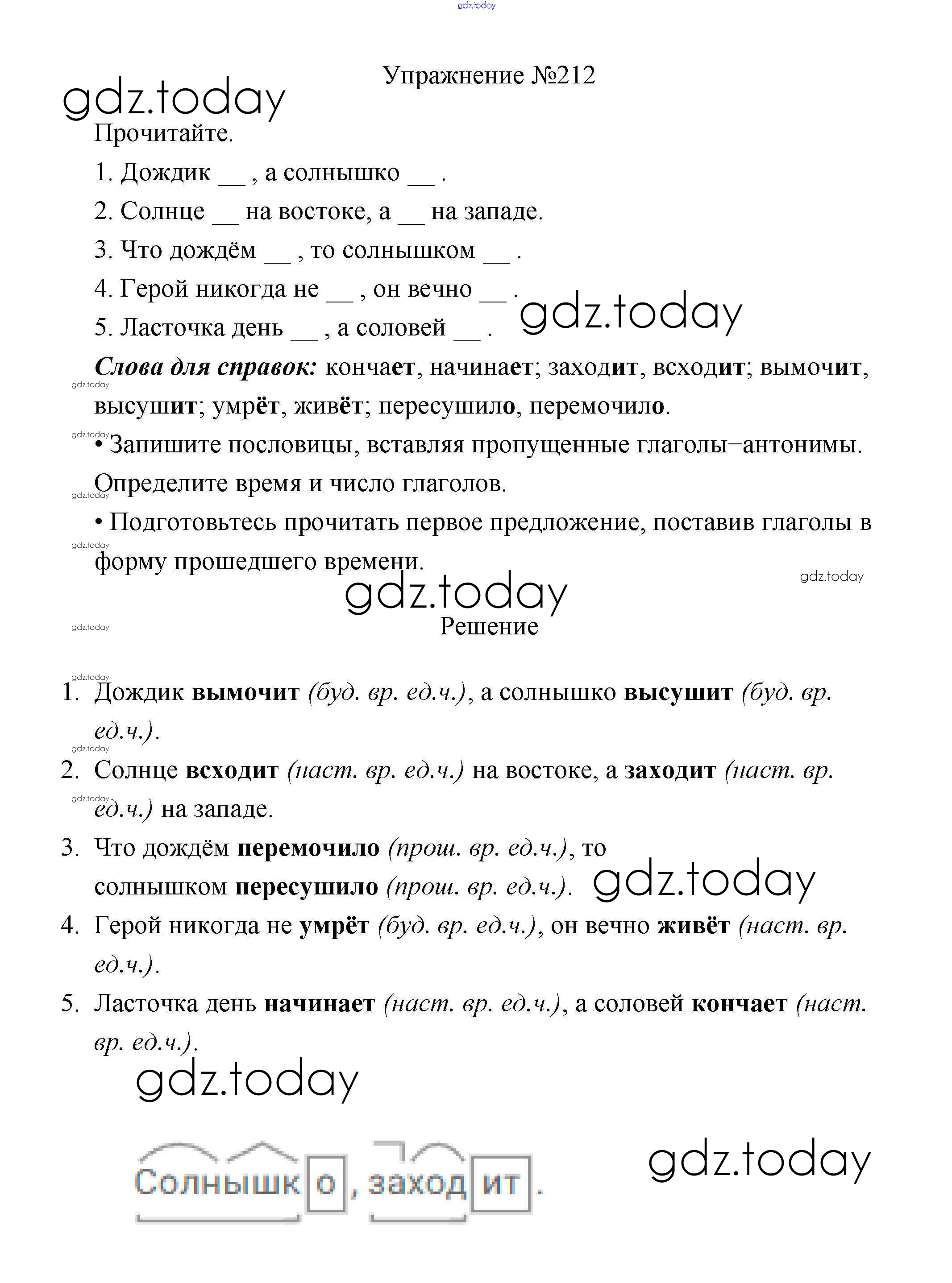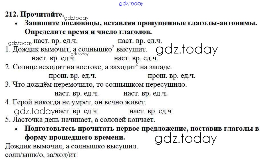 На страницах сайта gdz.today вы найдете учебный и вспомогательный материал, направленный на улучшения знаний школьной программы. ГДЗ - онлайн мир знаний Упражнения Часть 2 212 Учебнику по Русскому языку для 3 класса Канакина, Горецкий Просвещение Школа России 2013