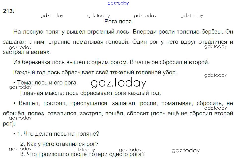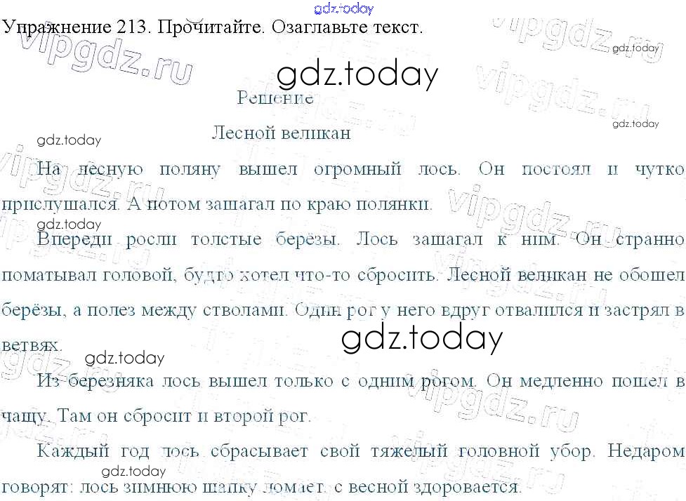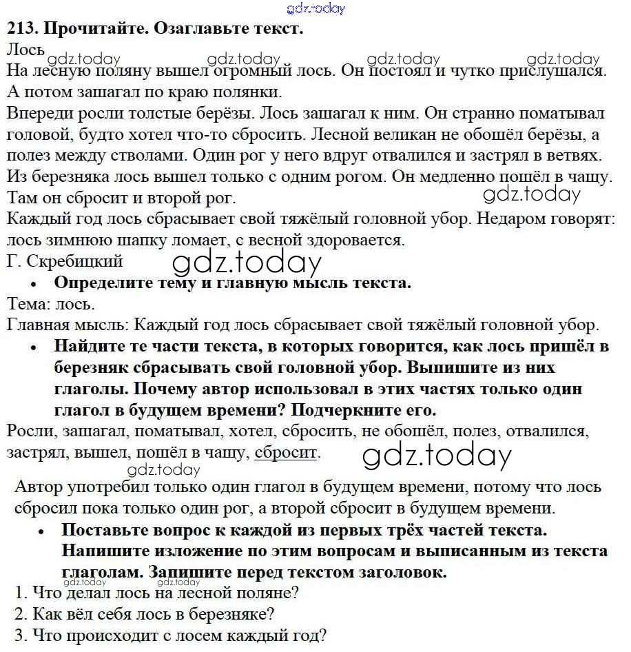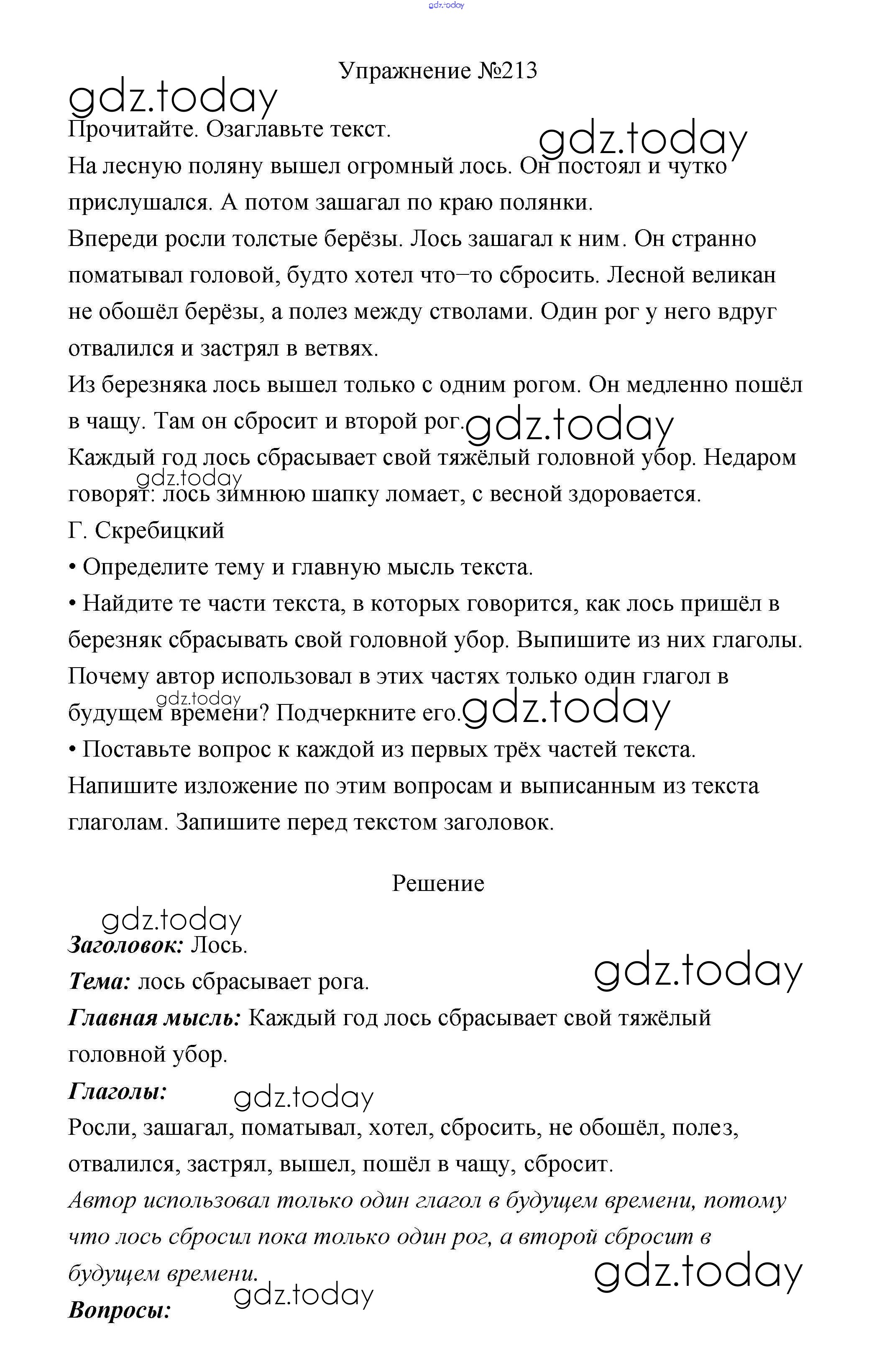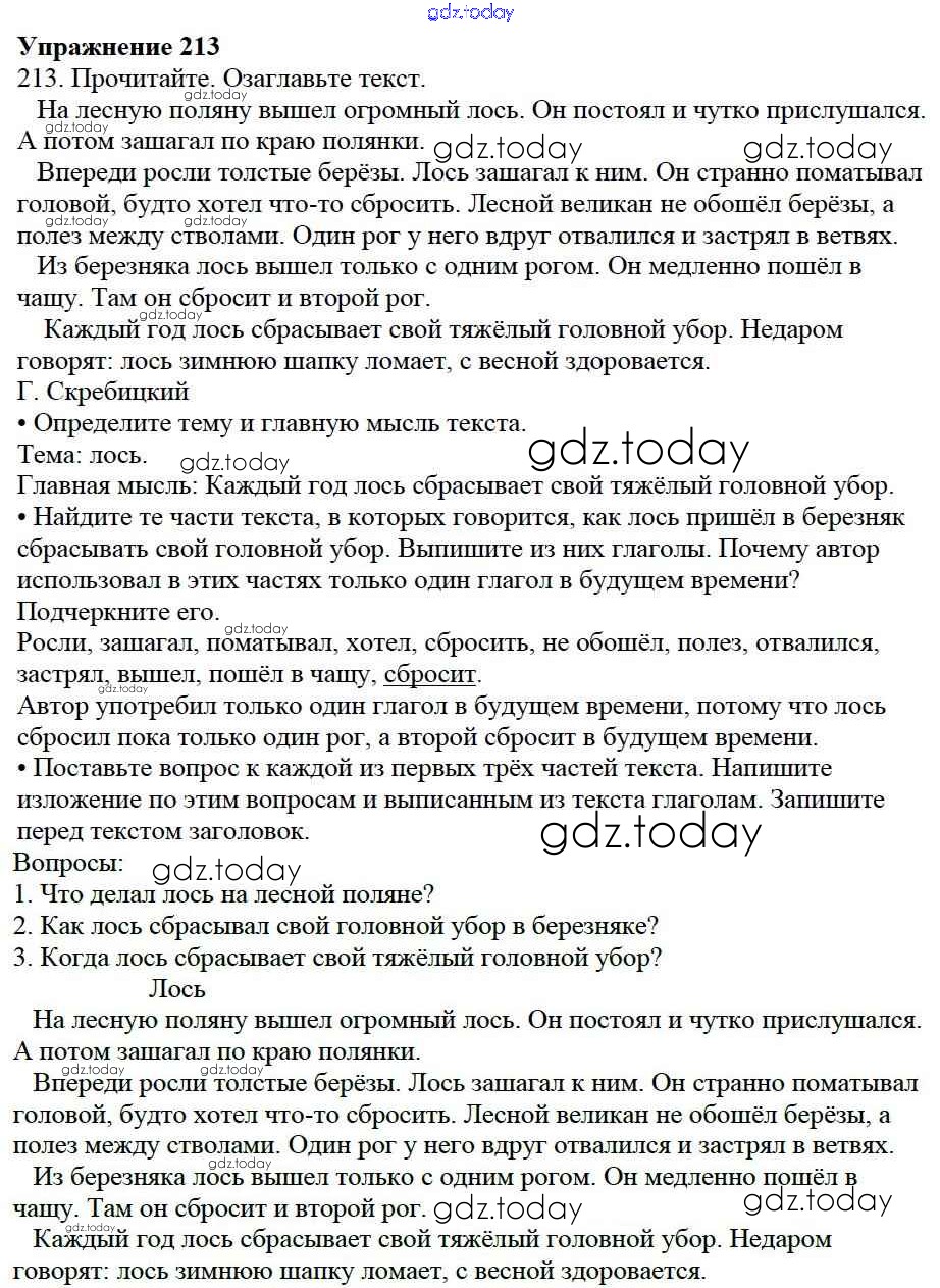 На страницах сайта gdz.today вы найдете учебный и вспомогательный материал, направленный на улучшения знаний школьной программы. ГДЗ - онлайн мир знаний Упражнения Часть 2 213 Учебнику по Русскому языку для 3 класса Канакина, Горецкий Просвещение Школа России 2013