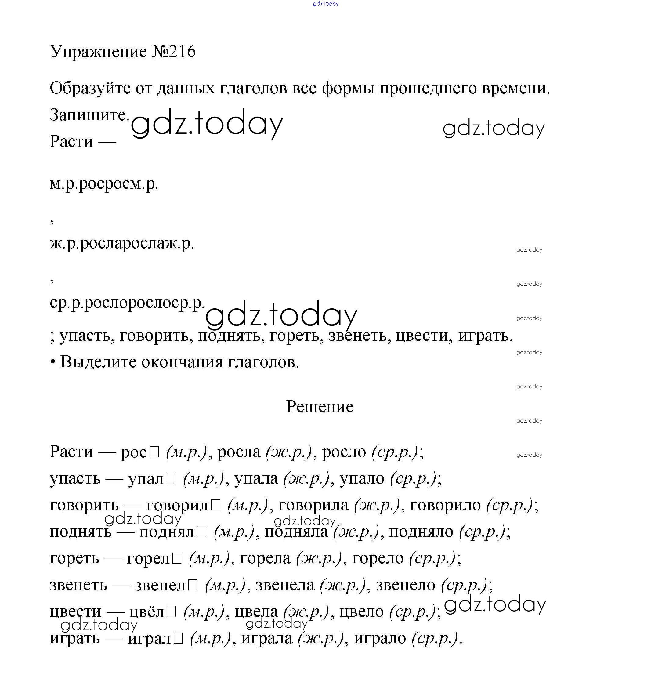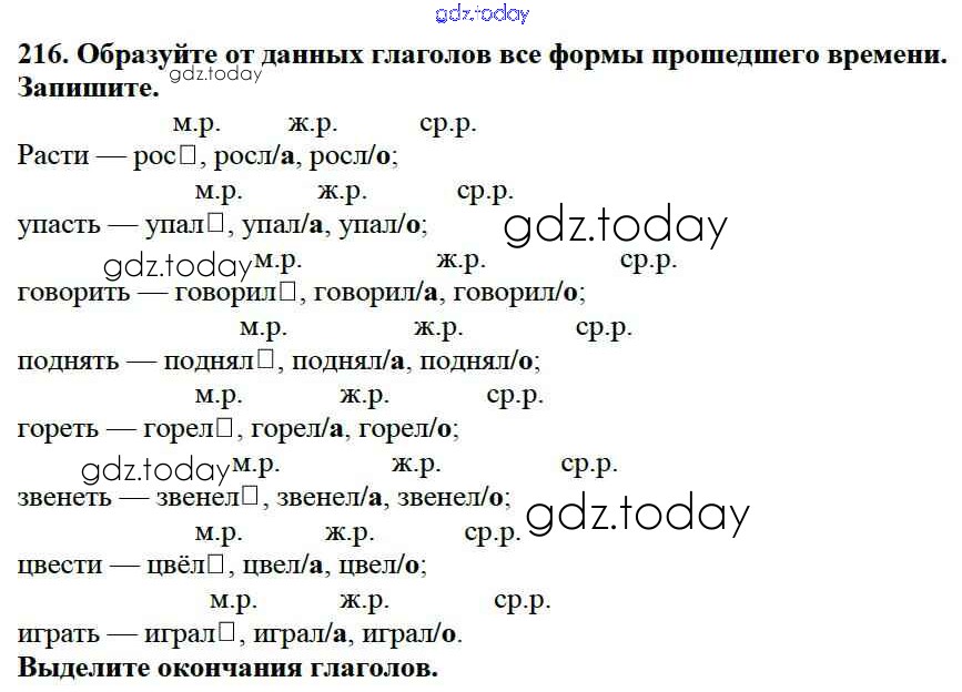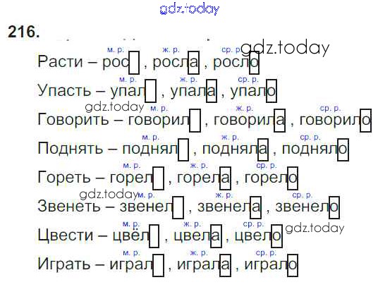 На страницах сайта gdz.today вы найдете учебный и вспомогательный материал, направленный на улучшения знаний школьной программы. ГДЗ - онлайн мир знаний Упражнения Часть 2 216 Учебнику по Русскому языку для 3 класса Канакина, Горецкий Просвещение Школа России 2013