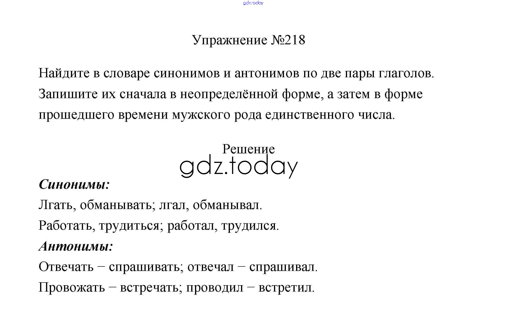 На страницах сайта gdz.today вы найдете учебный и вспомогательный материал, направленный на улучшения знаний школьной программы. ГДЗ - онлайн мир знаний Упражнения Часть 2 218 Учебнику по Русскому языку для 3 класса Канакина, Горецкий Просвещение Школа России 2013