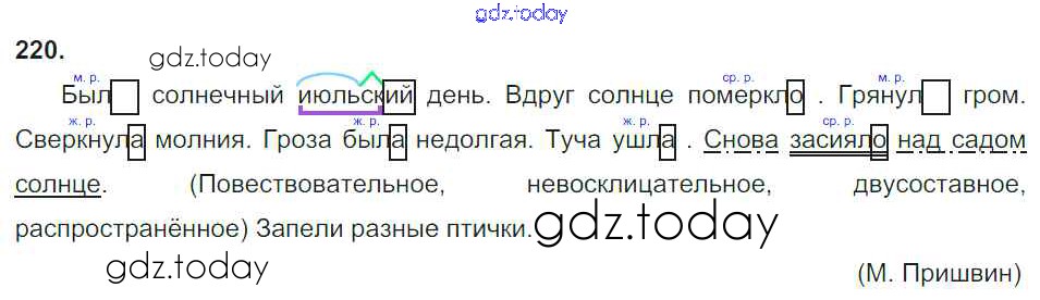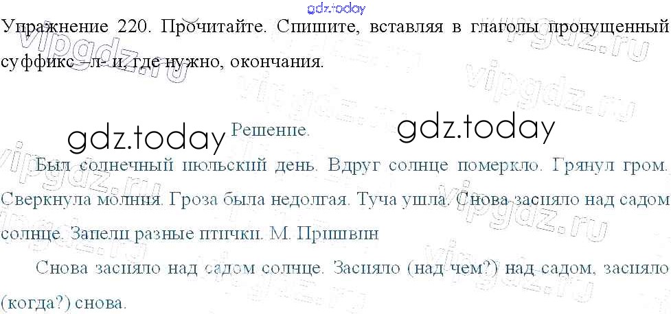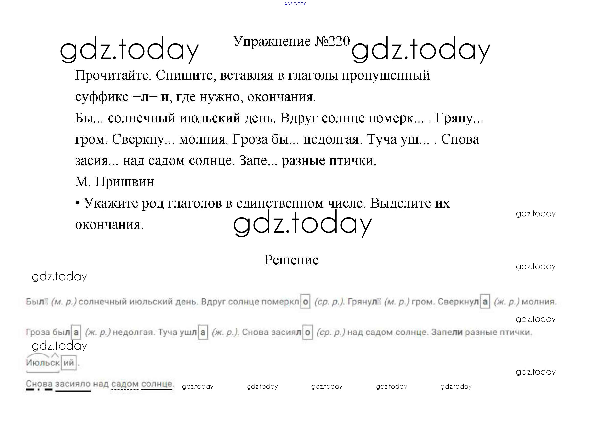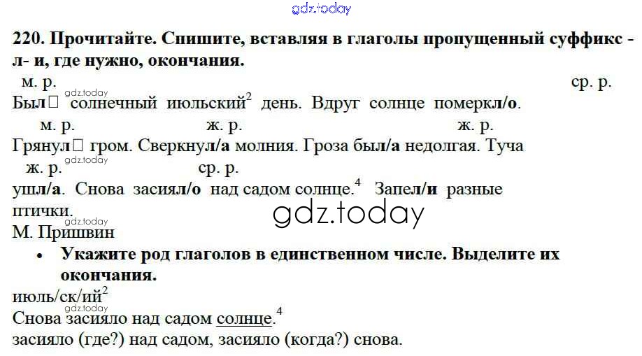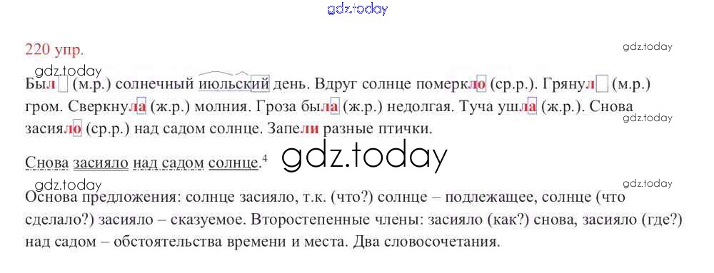 На страницах сайта gdz.today вы найдете учебный и вспомогательный материал, направленный на улучшения знаний школьной программы. ГДЗ - онлайн мир знаний Упражнения Часть 2 220 Учебнику по Русскому языку для 3 класса Канакина, Горецкий Просвещение Школа России 2013