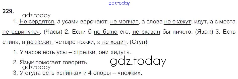 На страницах сайта gdz.today вы найдете учебный и вспомогательный материал, направленный на улучшения знаний школьной программы. ГДЗ - онлайн мир знаний Упражнения Часть 2 229 Учебнику по Русскому языку для 3 класса Канакина, Горецкий Просвещение Школа России 2013