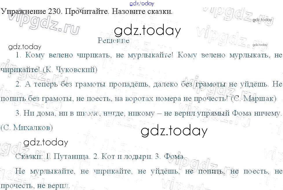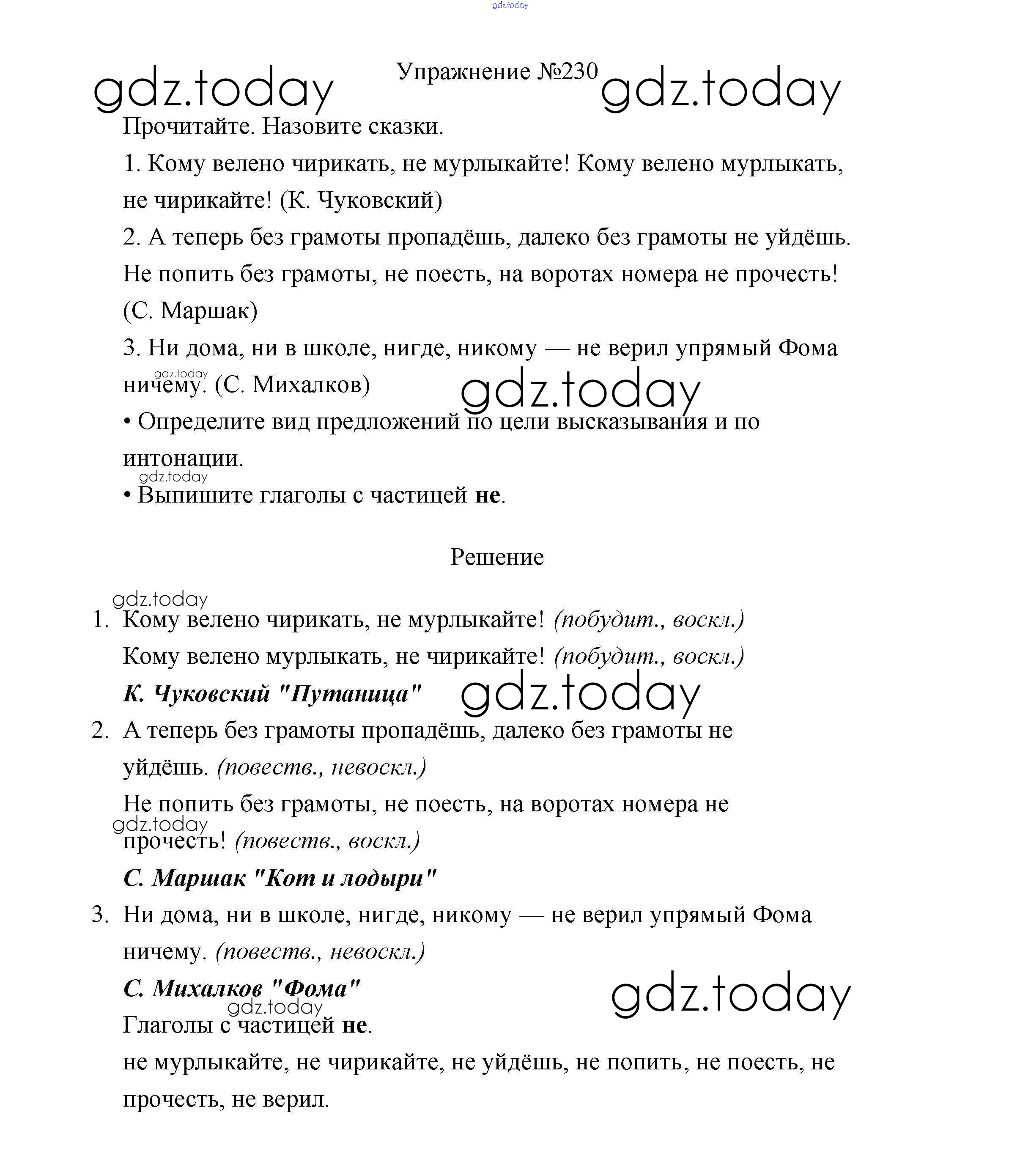 На страницах сайта gdz.today вы найдете учебный и вспомогательный материал, направленный на улучшения знаний школьной программы. ГДЗ - онлайн мир знаний Упражнения Часть 2 230 Учебнику по Русскому языку для 3 класса Канакина, Горецкий Просвещение Школа России 2013