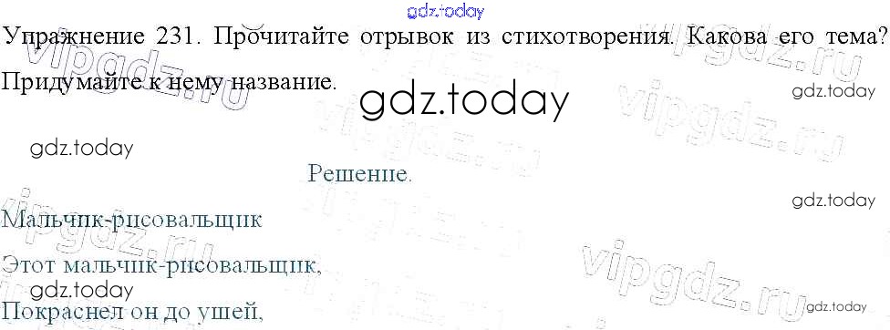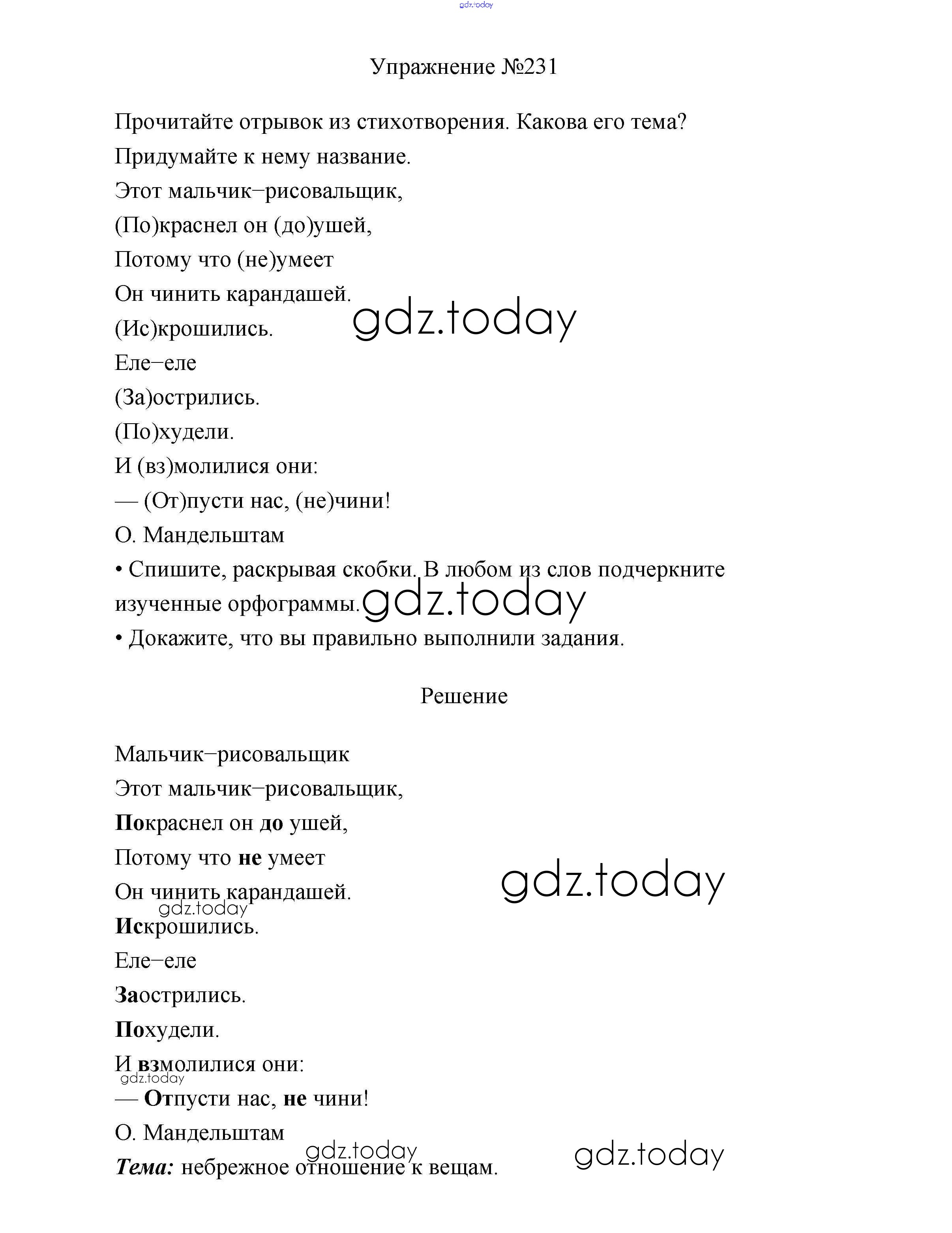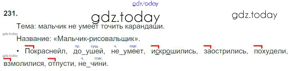 На страницах сайта gdz.today вы найдете учебный и вспомогательный материал, направленный на улучшения знаний школьной программы. ГДЗ - онлайн мир знаний Упражнения Часть 2 231 Учебнику по Русскому языку для 3 класса Канакина, Горецкий Просвещение Школа России 2013