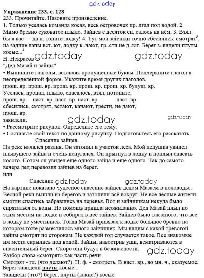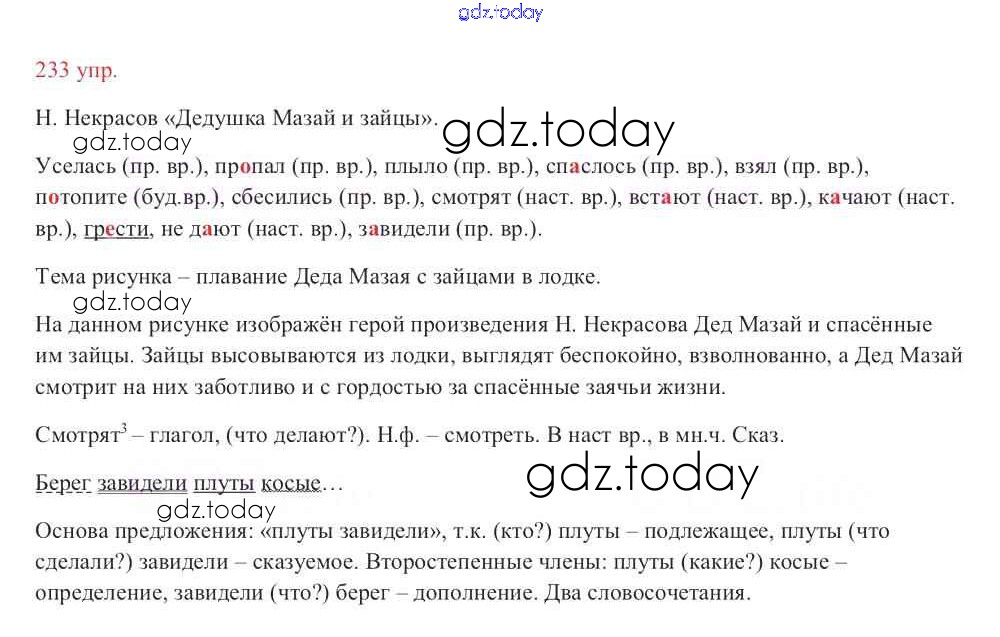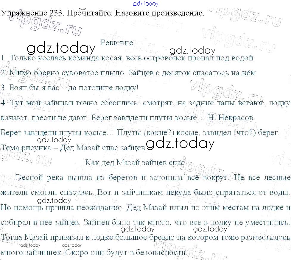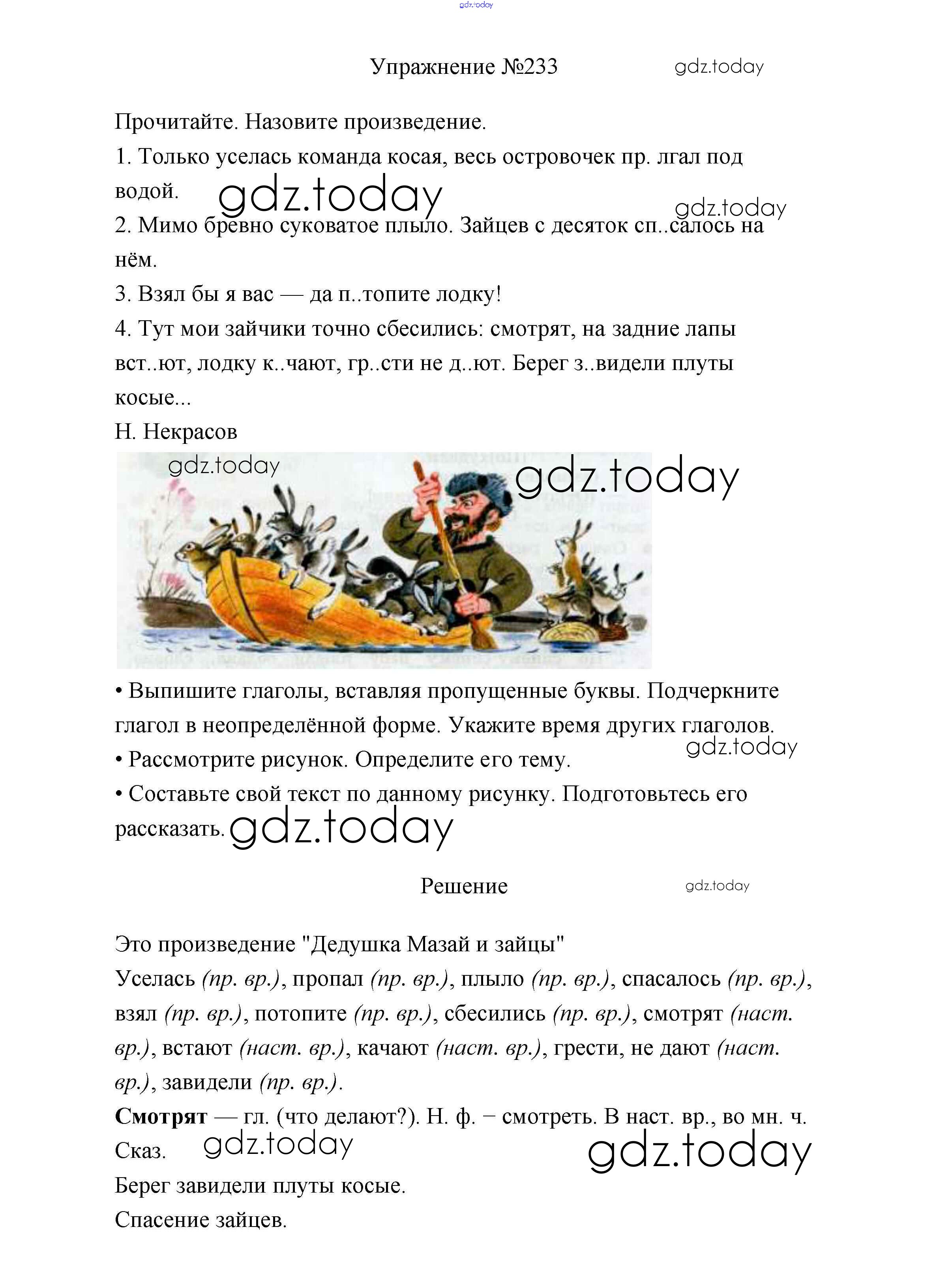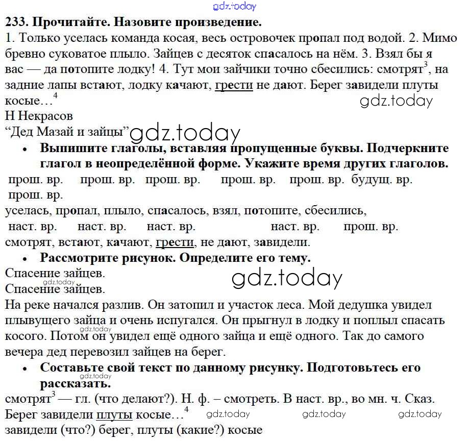 На страницах сайта gdz.today вы найдете учебный и вспомогательный материал, направленный на улучшения знаний школьной программы. ГДЗ - онлайн мир знаний Упражнения Часть 2 233 Учебнику по Русскому языку для 3 класса Канакина, Горецкий Просвещение Школа России 2013