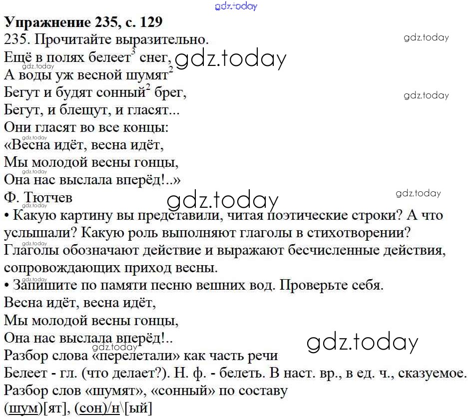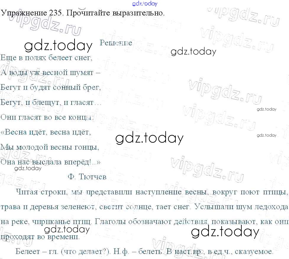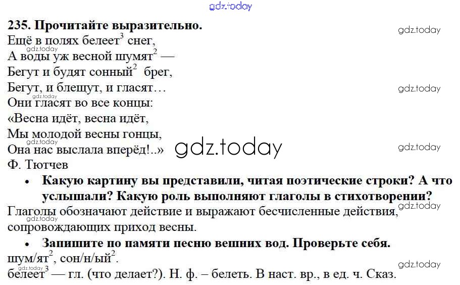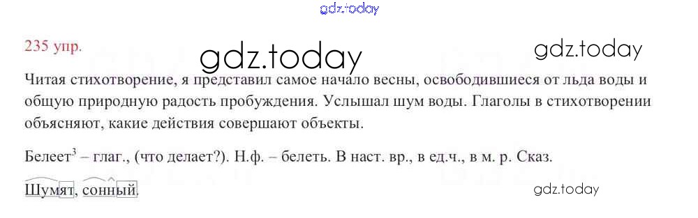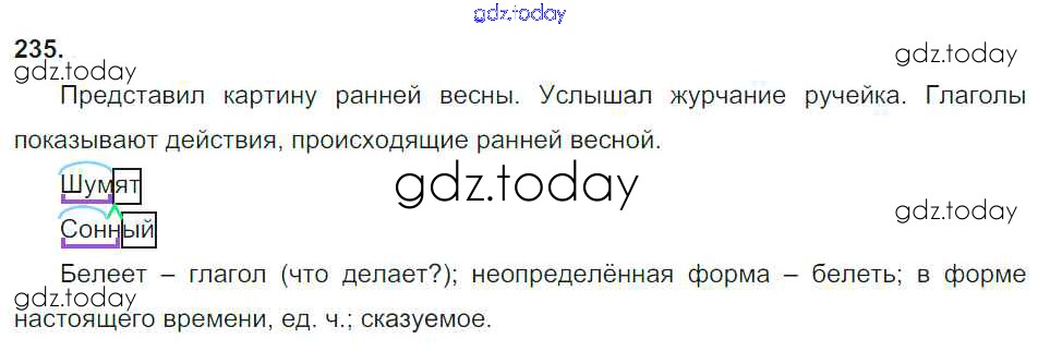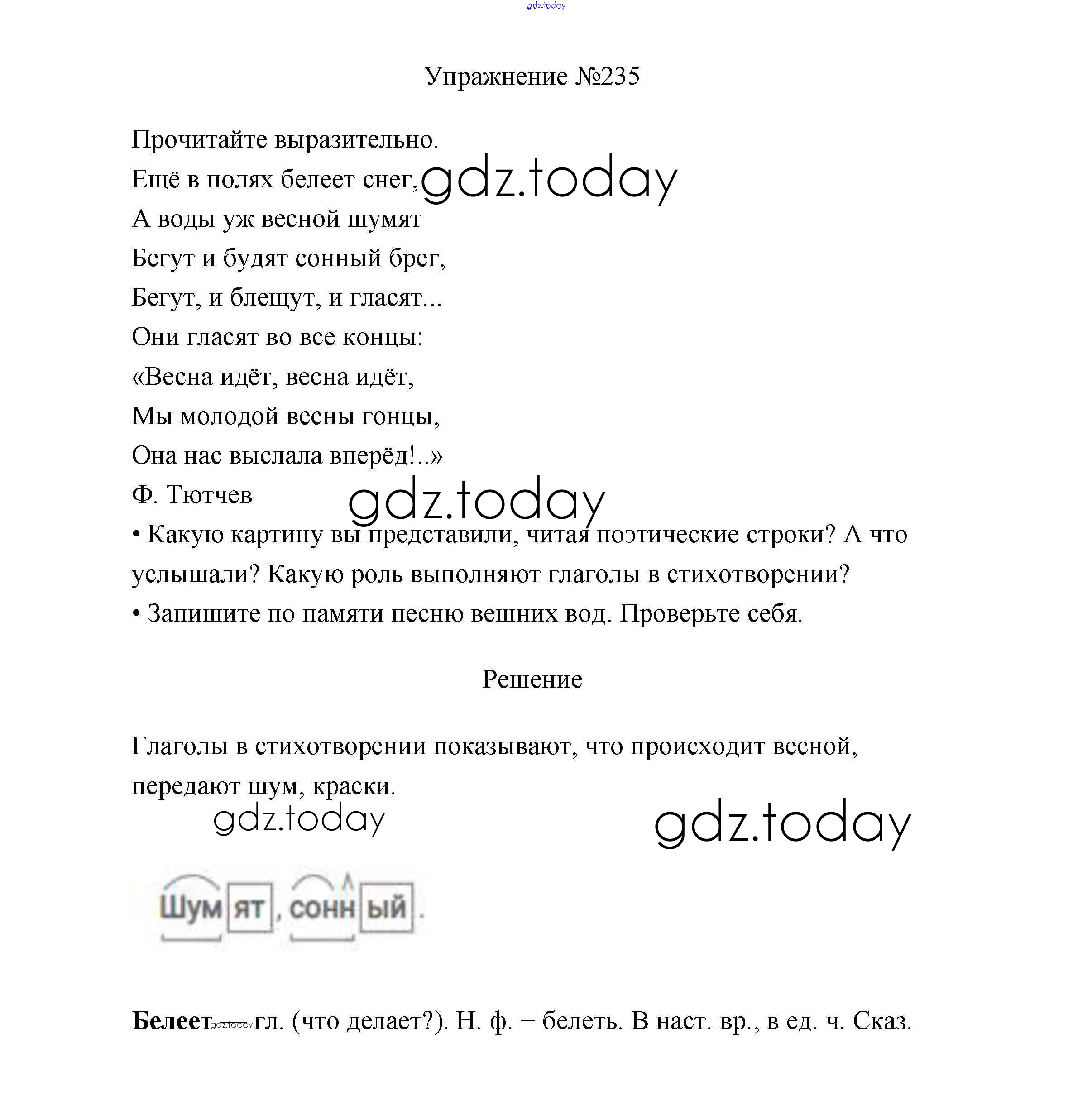 На страницах сайта gdz.today вы найдете учебный и вспомогательный материал, направленный на улучшения знаний школьной программы. ГДЗ - онлайн мир знаний Упражнения Часть 2 235 Учебнику по Русскому языку для 3 класса Канакина, Горецкий Просвещение Школа России 2013