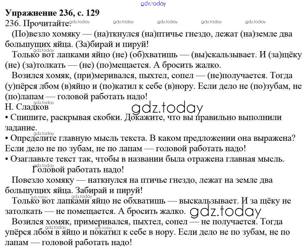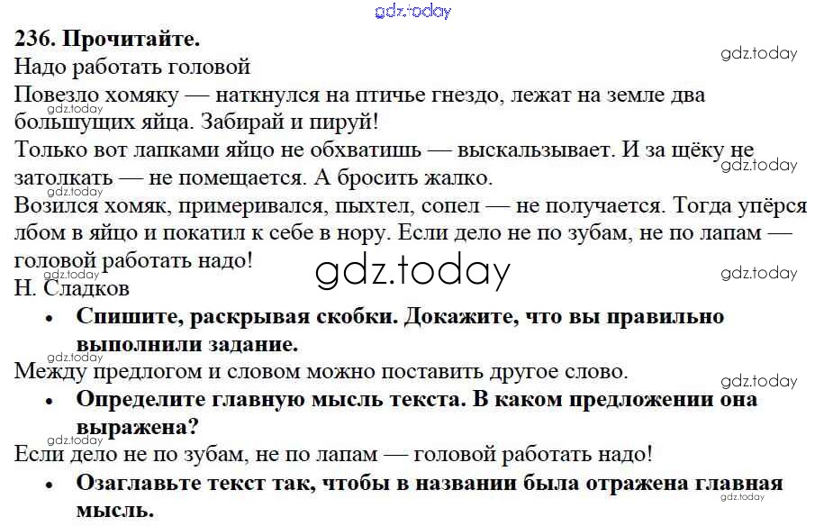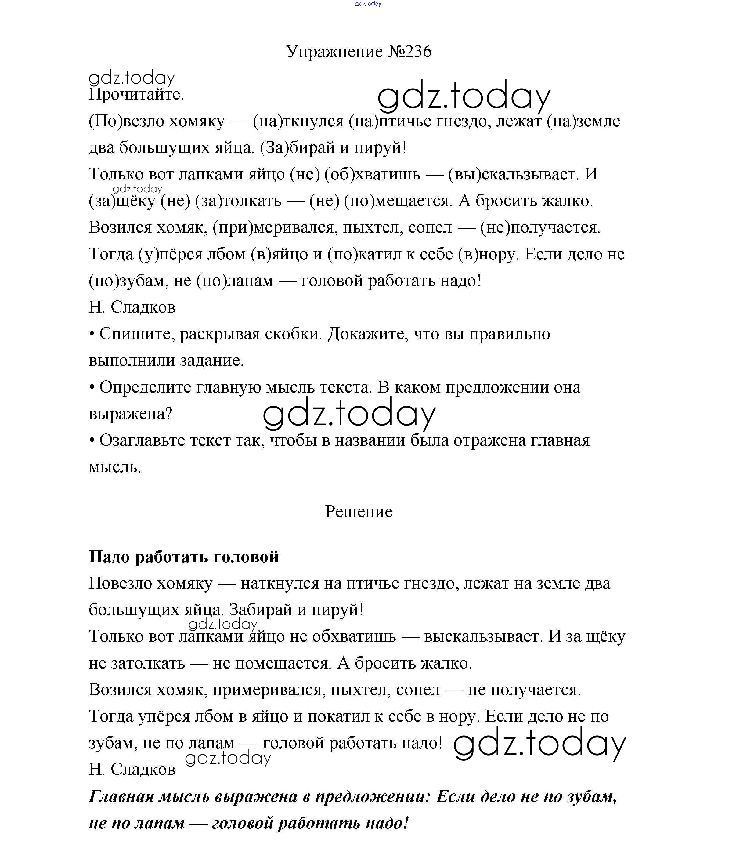 На страницах сайта gdz.today вы найдете учебный и вспомогательный материал, направленный на улучшения знаний школьной программы. ГДЗ - онлайн мир знаний Упражнения Часть 2 236 Учебнику по Русскому языку для 3 класса Канакина, Горецкий Просвещение Школа России 2013