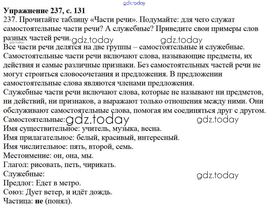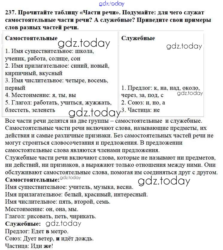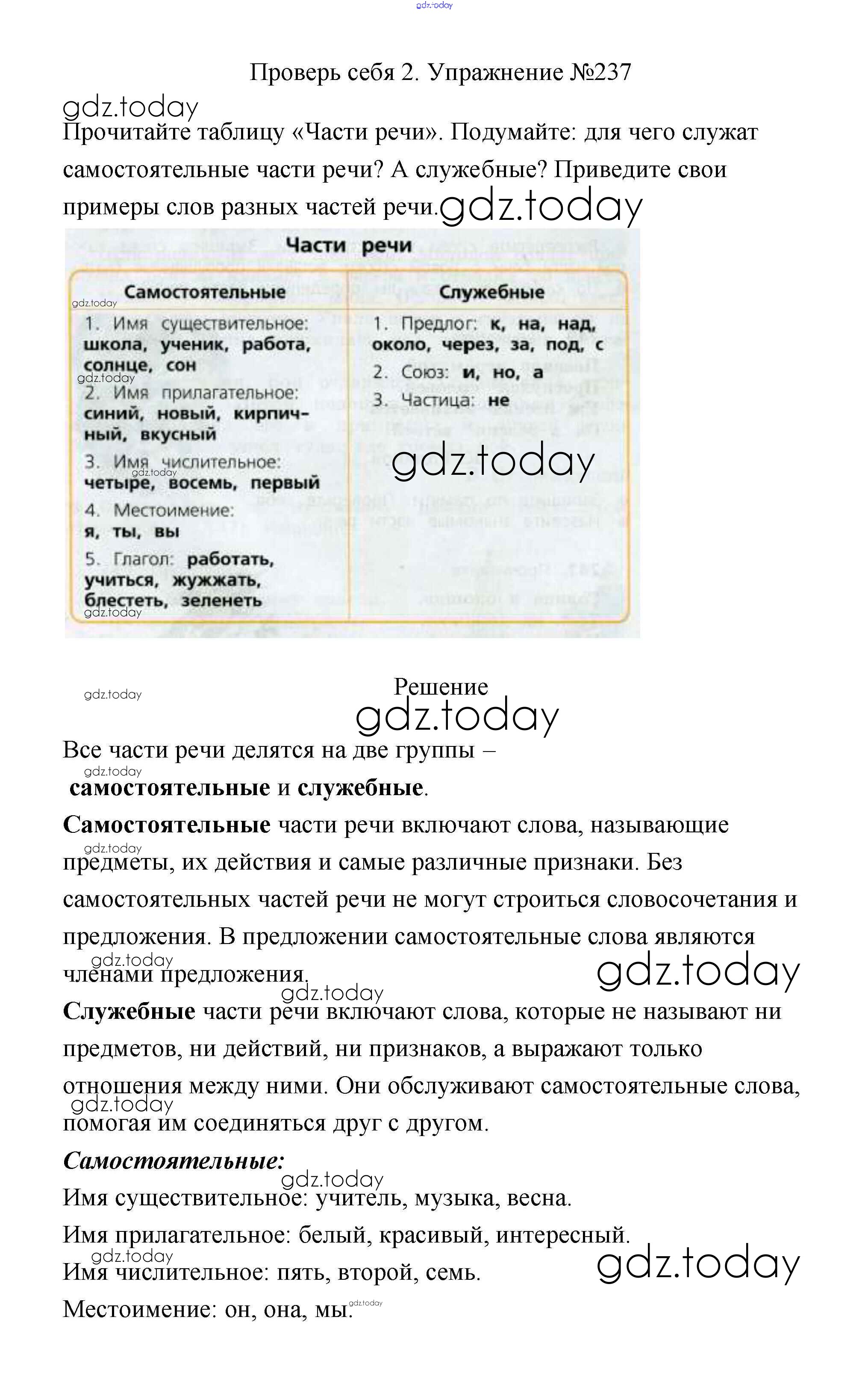 На страницах сайта gdz.today вы найдете учебный и вспомогательный материал, направленный на улучшения знаний школьной программы. ГДЗ - онлайн мир знаний Упражнения Часть 2 237 Учебнику по Русскому языку для 3 класса Канакина, Горецкий Просвещение Школа России 2013