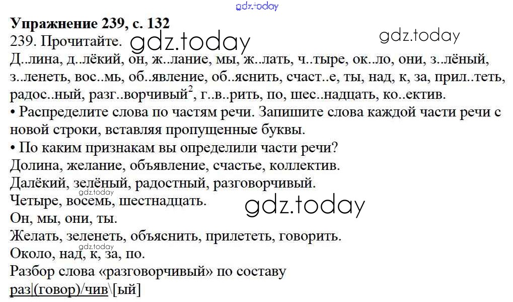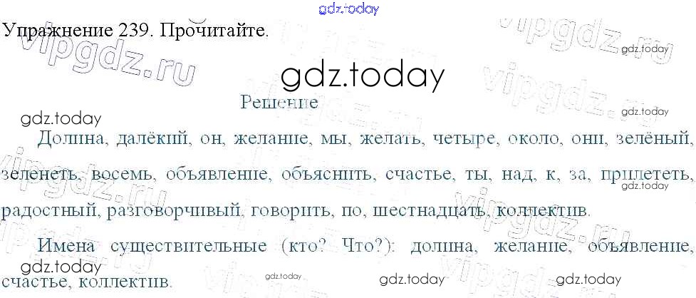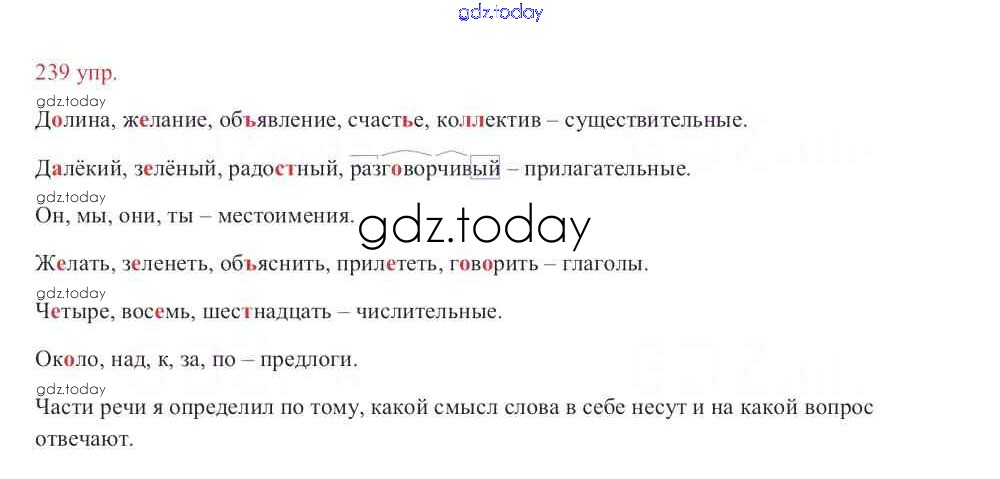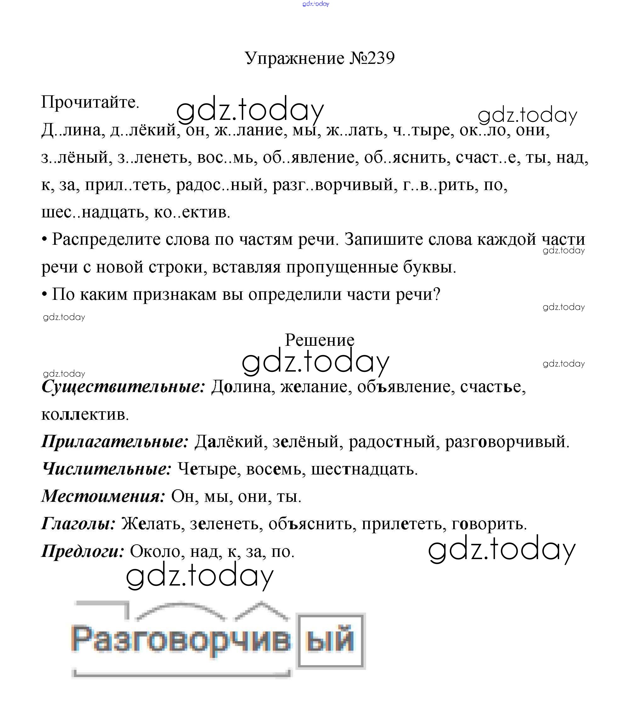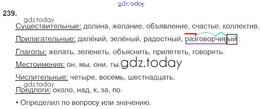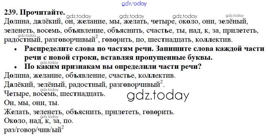 На страницах сайта gdz.today вы найдете учебный и вспомогательный материал, направленный на улучшения знаний школьной программы. ГДЗ - онлайн мир знаний Упражнения Часть 2 239 Учебнику по Русскому языку для 3 класса Канакина, Горецкий Просвещение Школа России 2013