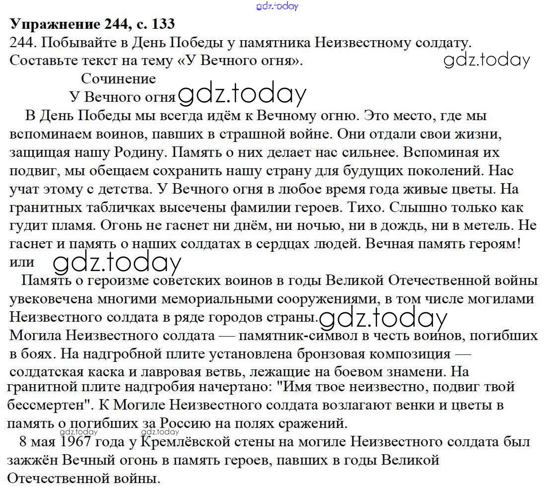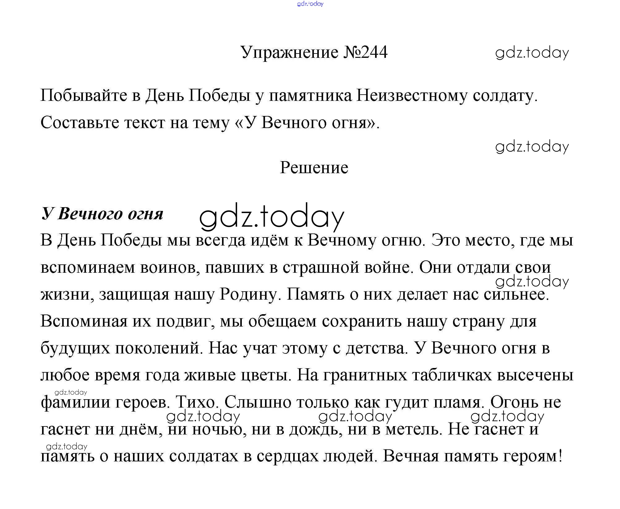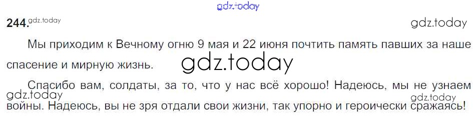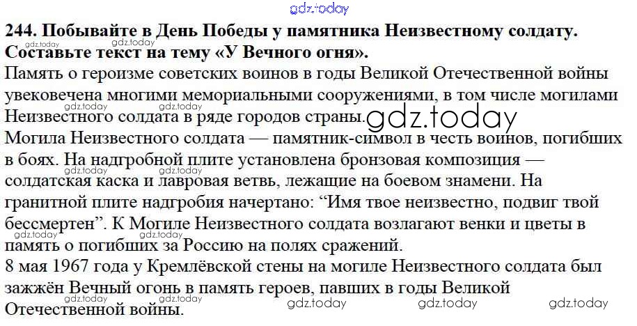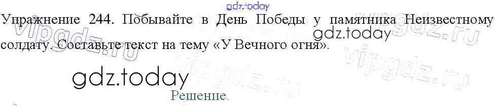На страницах сайта gdz.today вы найдете учебный и вспомогательный материал, направленный на улучшения знаний школьной программы. ГДЗ - онлайн мир знаний Упражнения Часть 2 244 Учебнику по Русскому языку для 3 класса Канакина, Горецкий Просвещение Школа России 2013