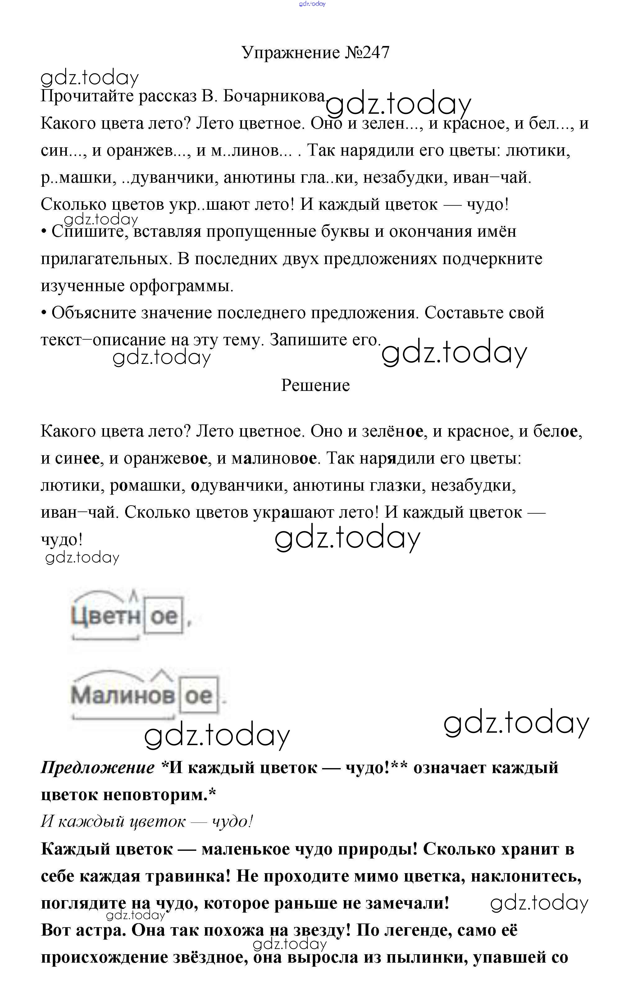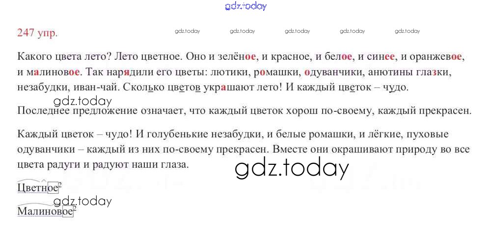 На страницах сайта gdz.today вы найдете учебный и вспомогательный материал, направленный на улучшения знаний школьной программы. ГДЗ - онлайн мир знаний Упражнения Часть 2 247 Учебнику по Русскому языку для 3 класса Канакина, Горецкий Просвещение Школа России 2013